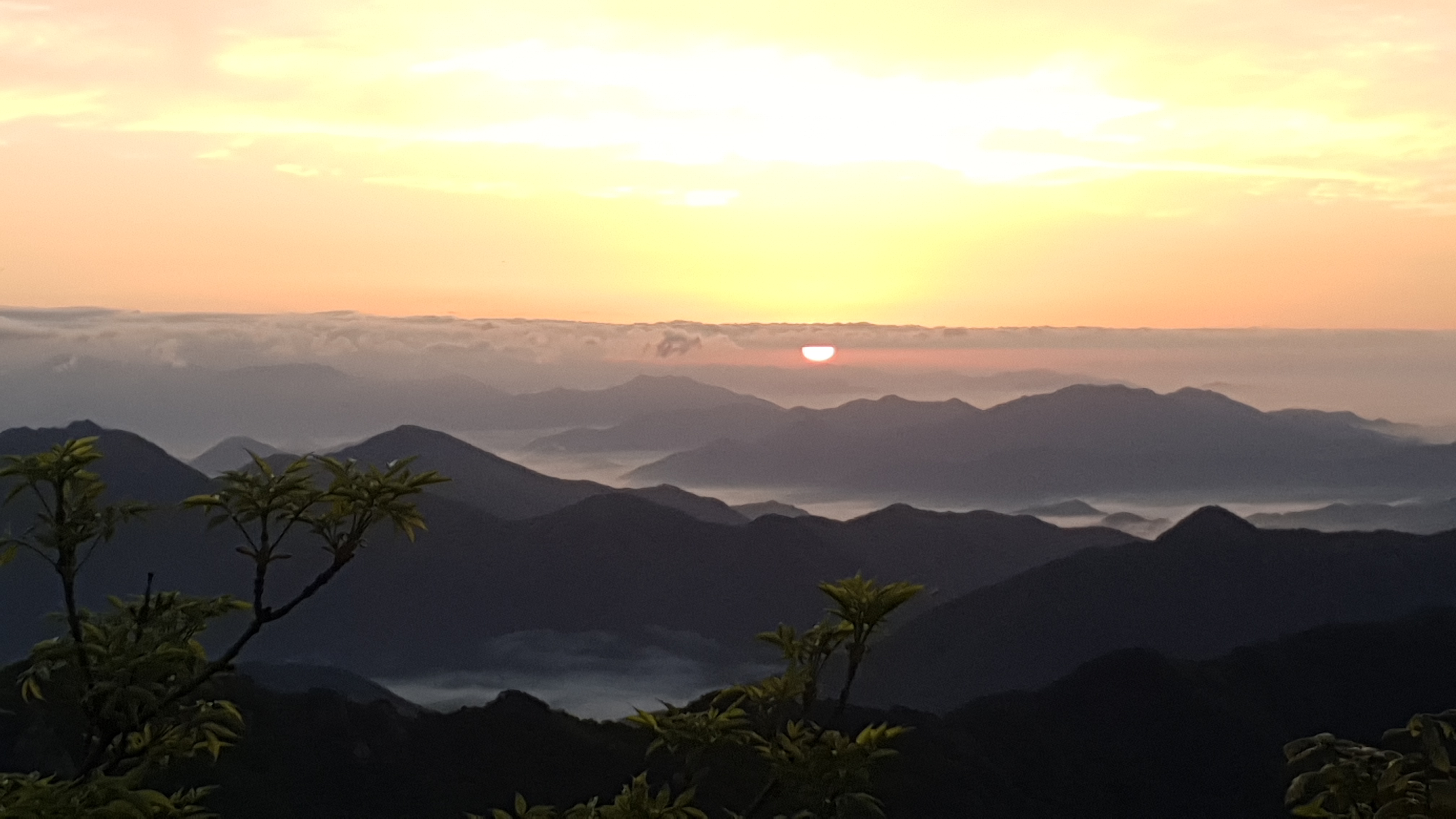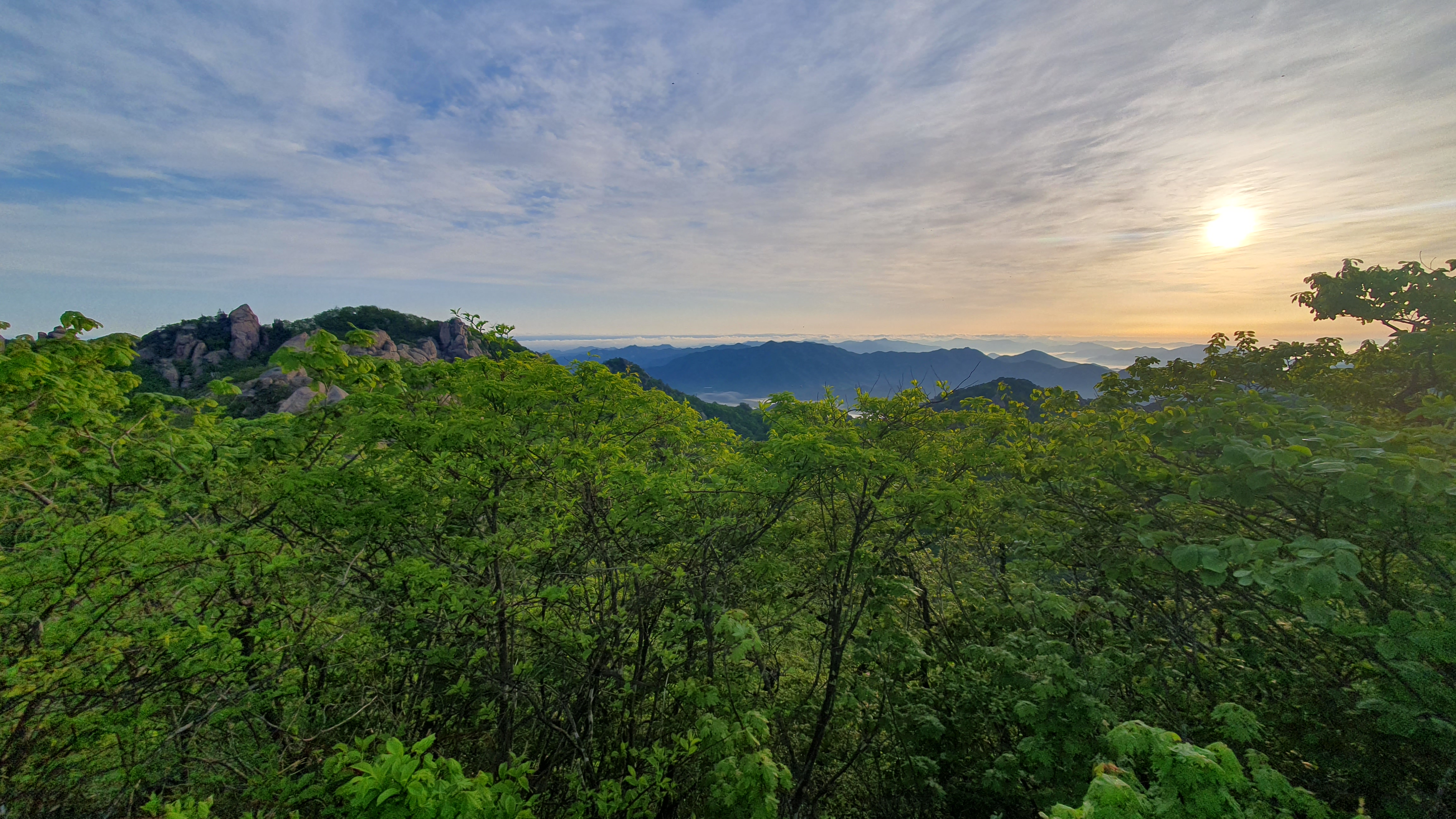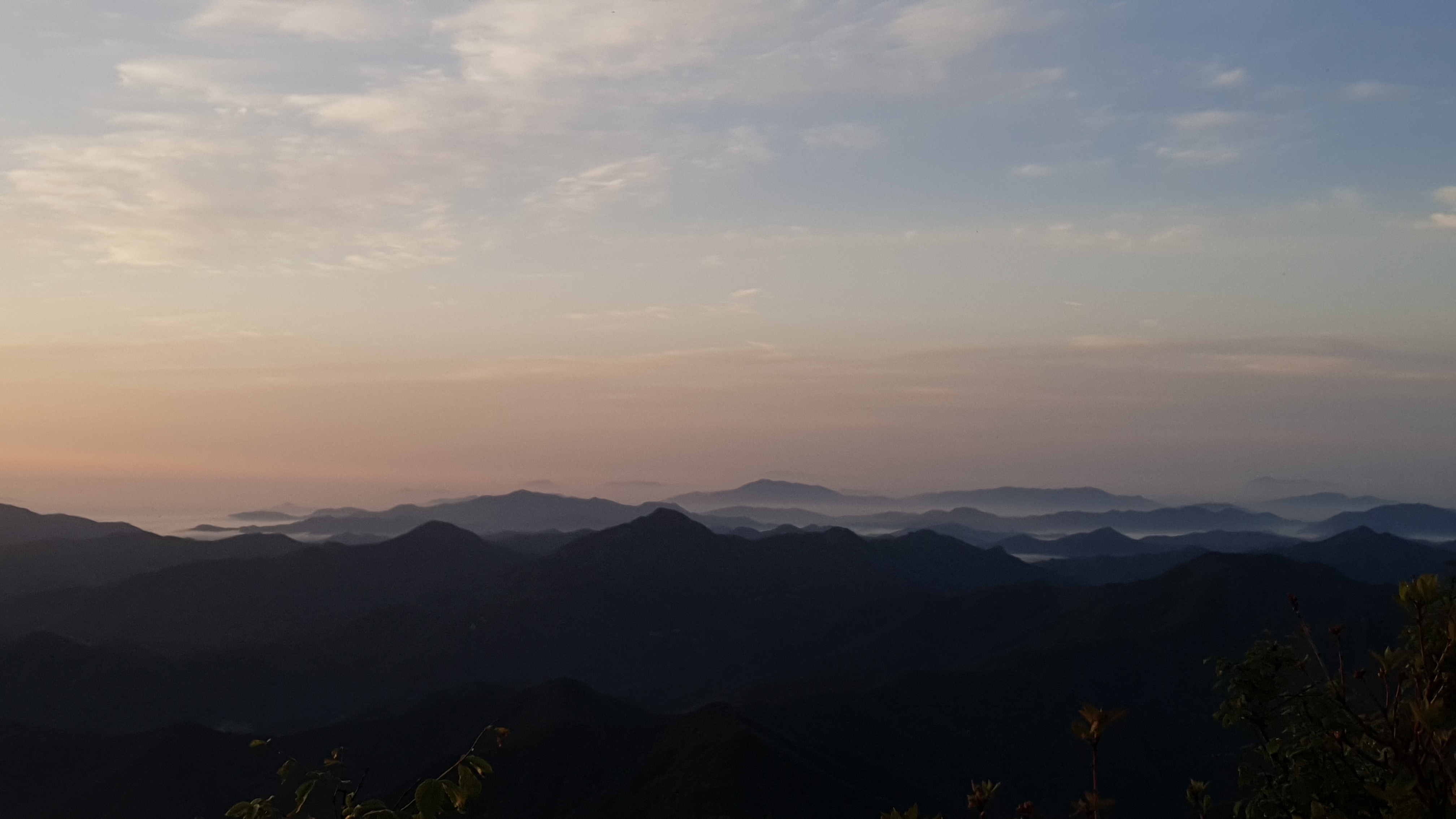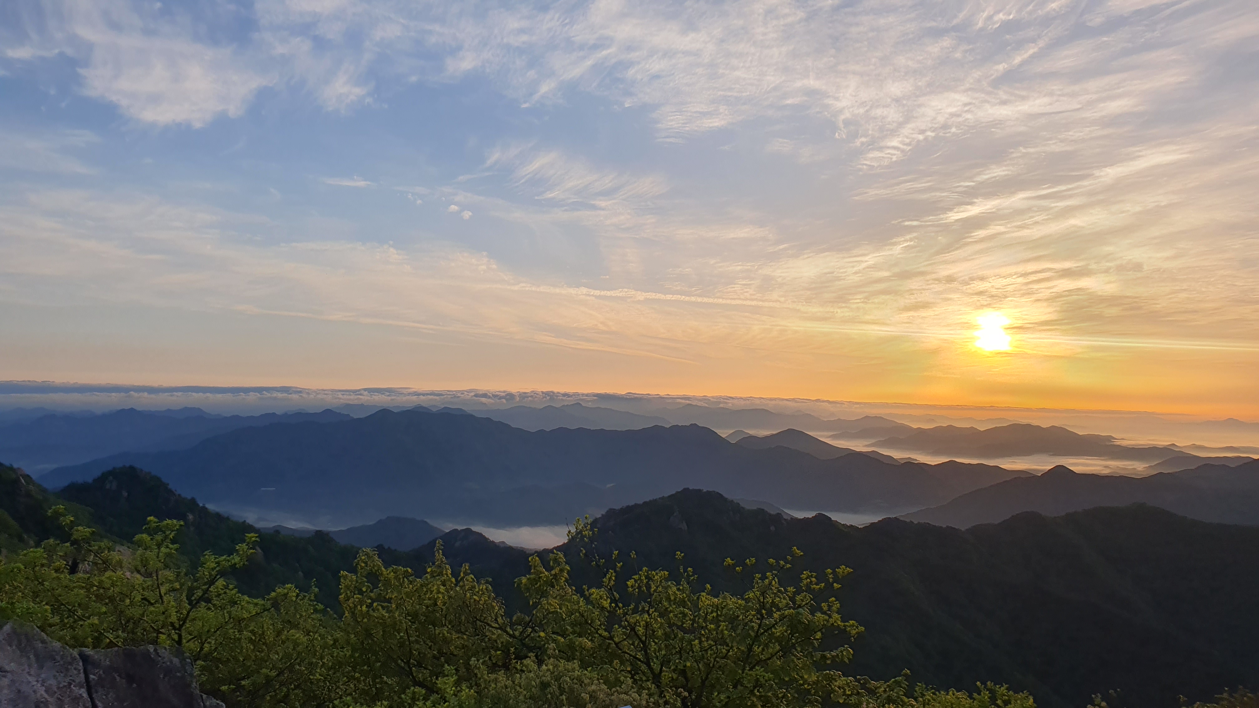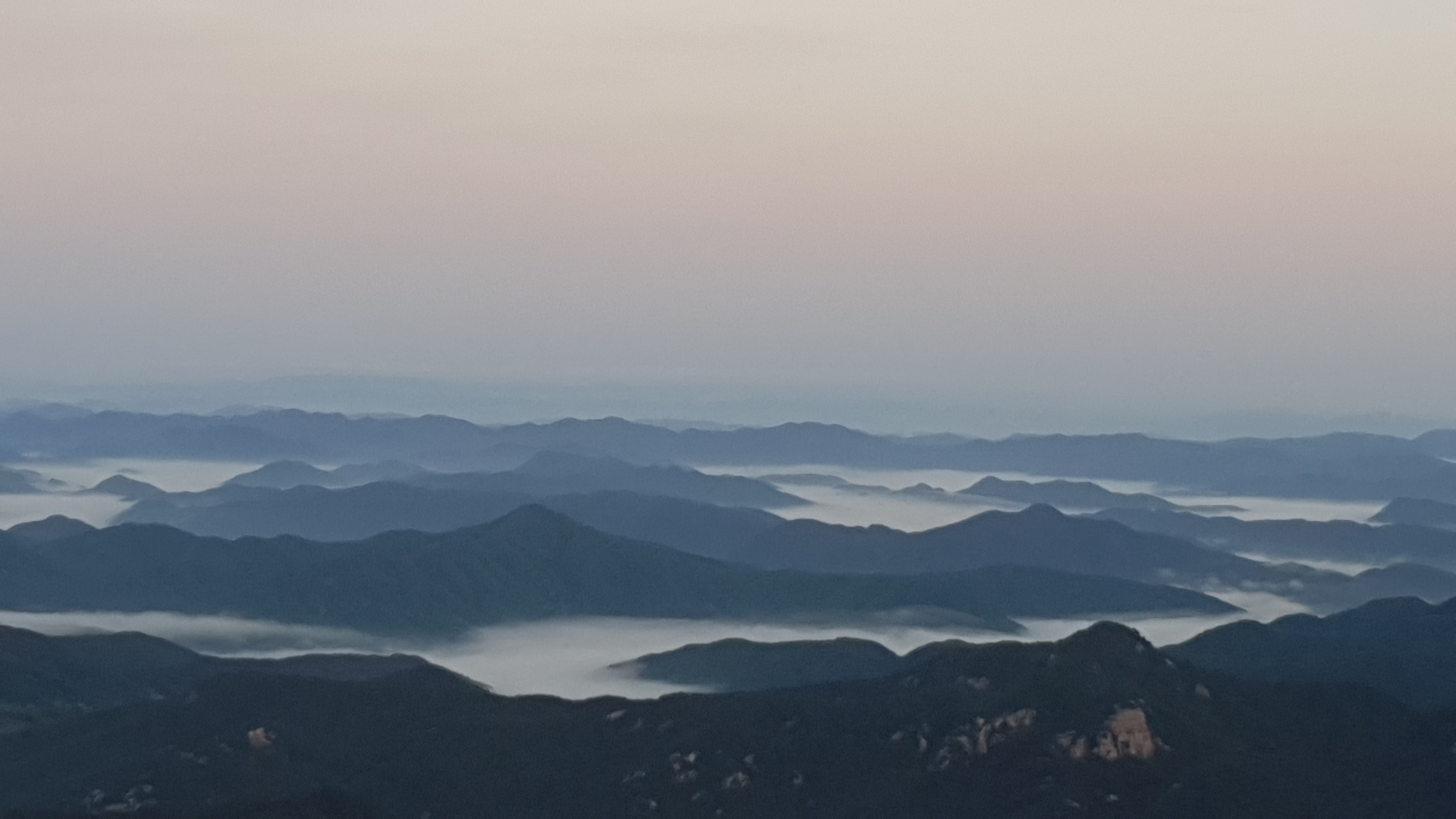 눈을 뜨고 시간을 보니 04시 45분 이다. 해 뜨는 시간이 05시 15분 라고 하니 일어나 준비하고 텐트 밖으로 나오자 붉은빛이 감돈다. 정상으로 사브작 사브작 올라가자 골짜구 골짜구 마다 와 허연물이 한 그득하다 ㅎㅎ 지금 바다에 온겨??