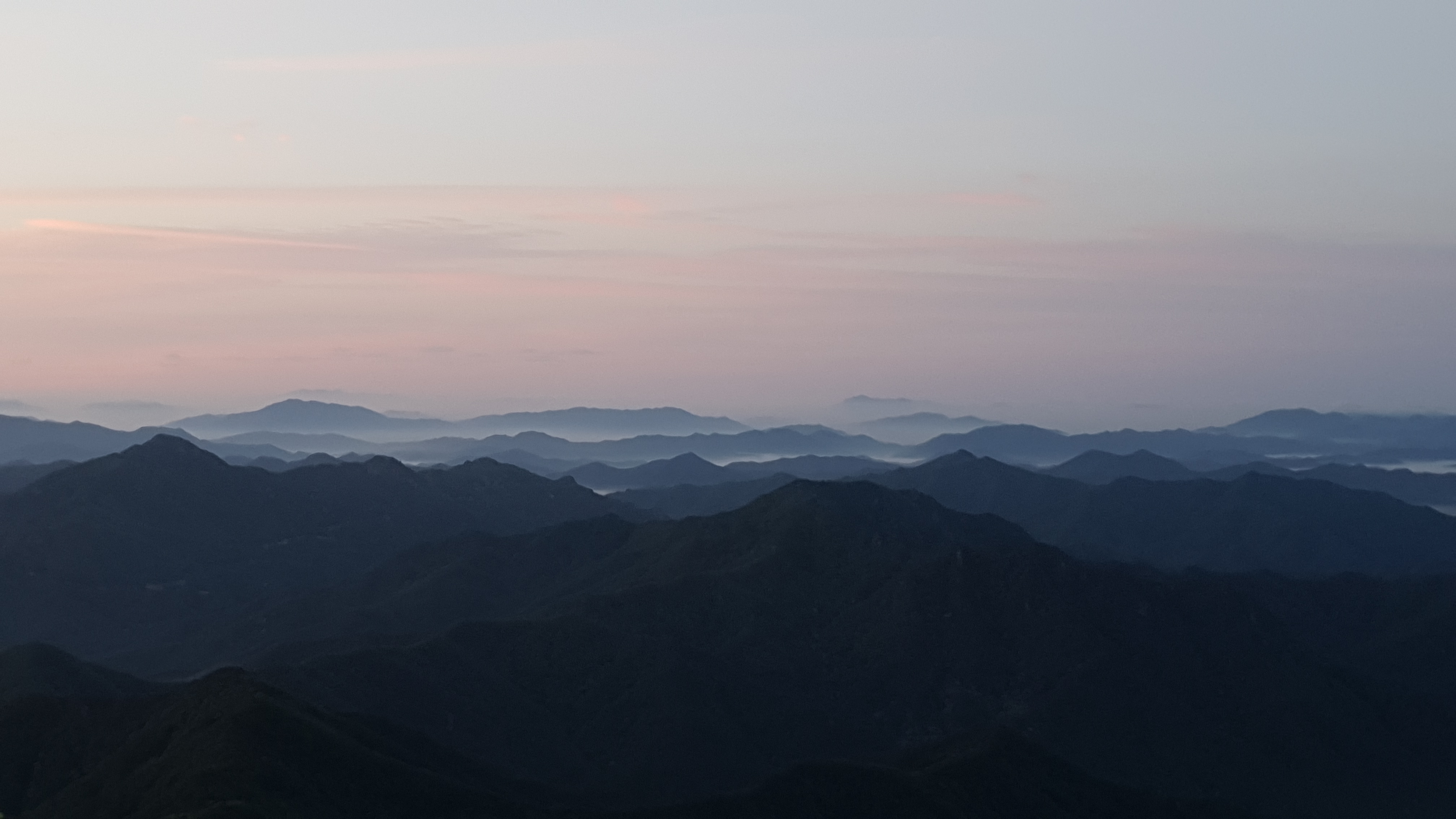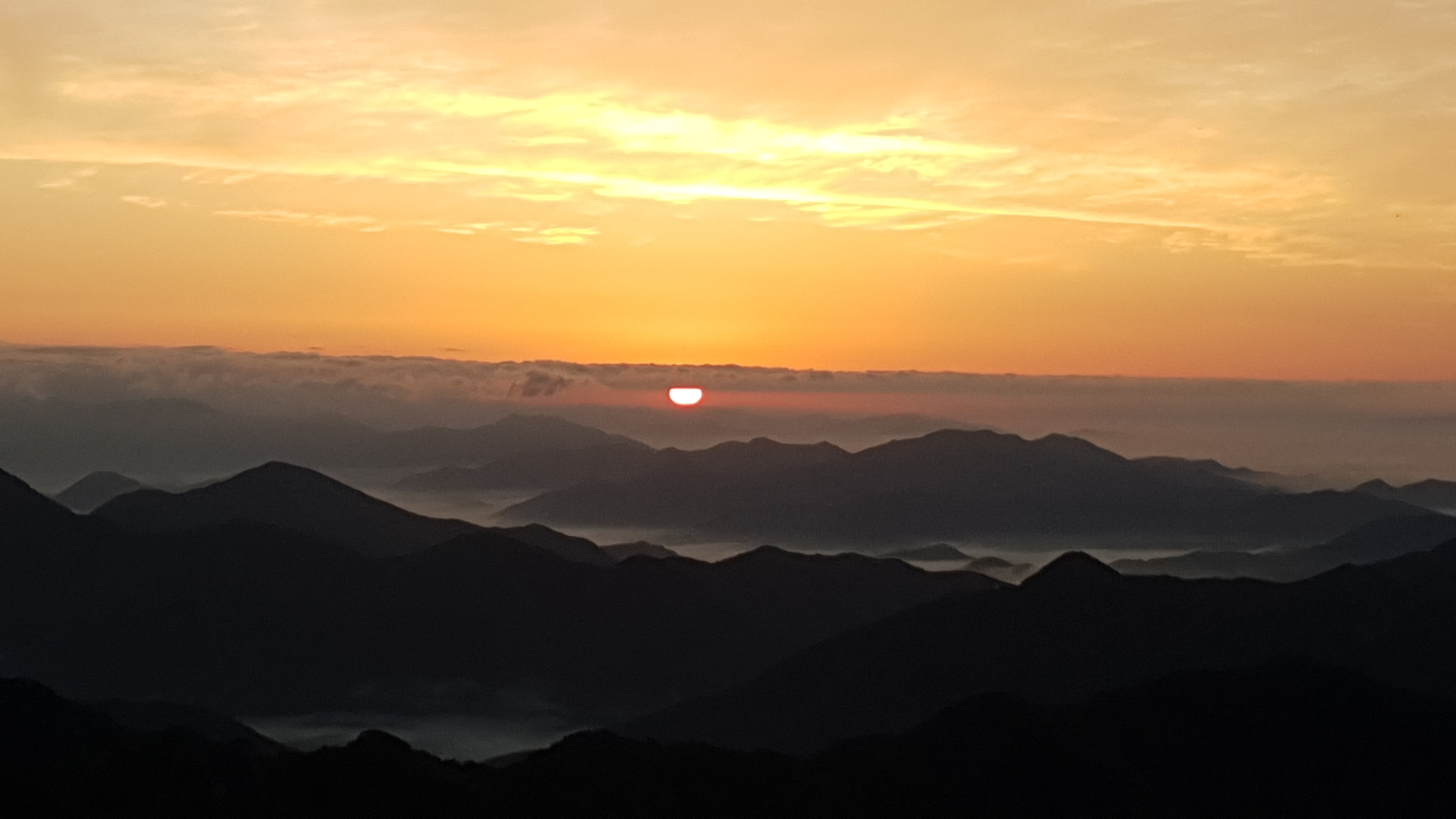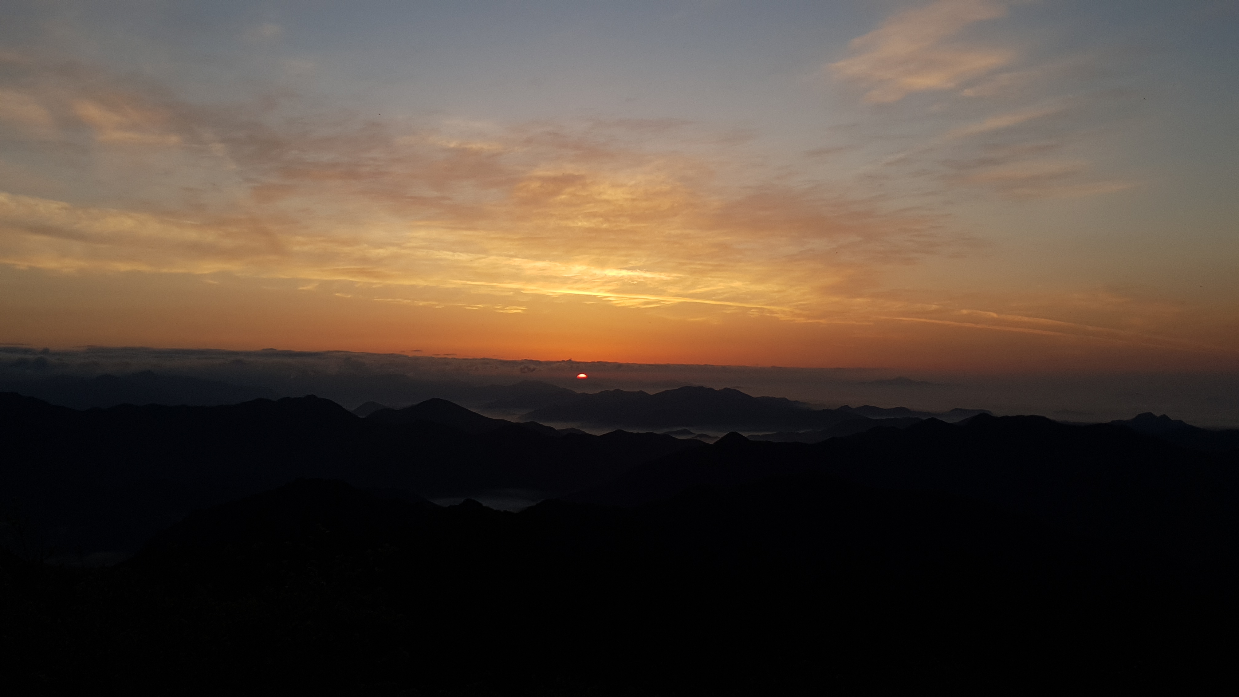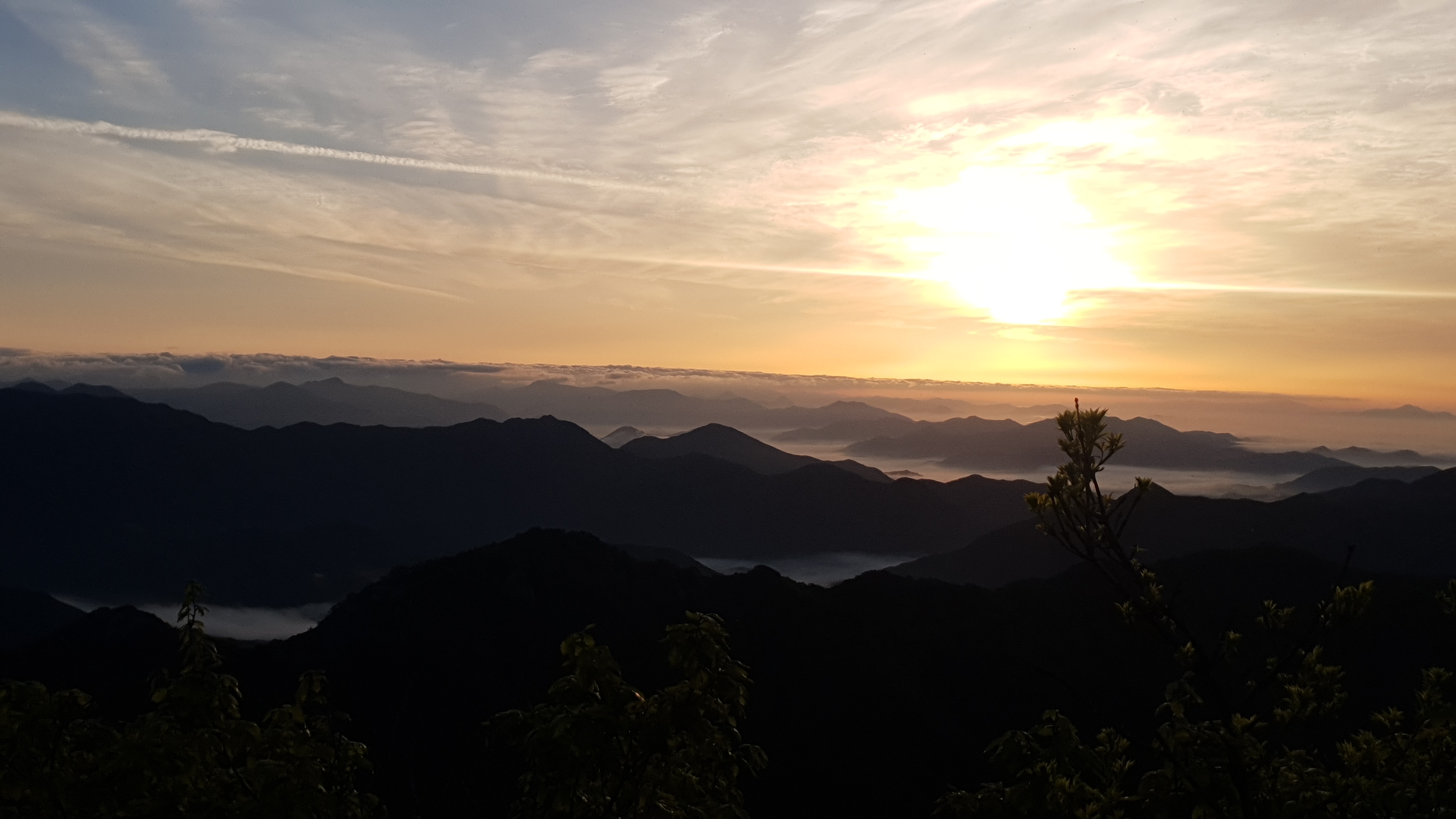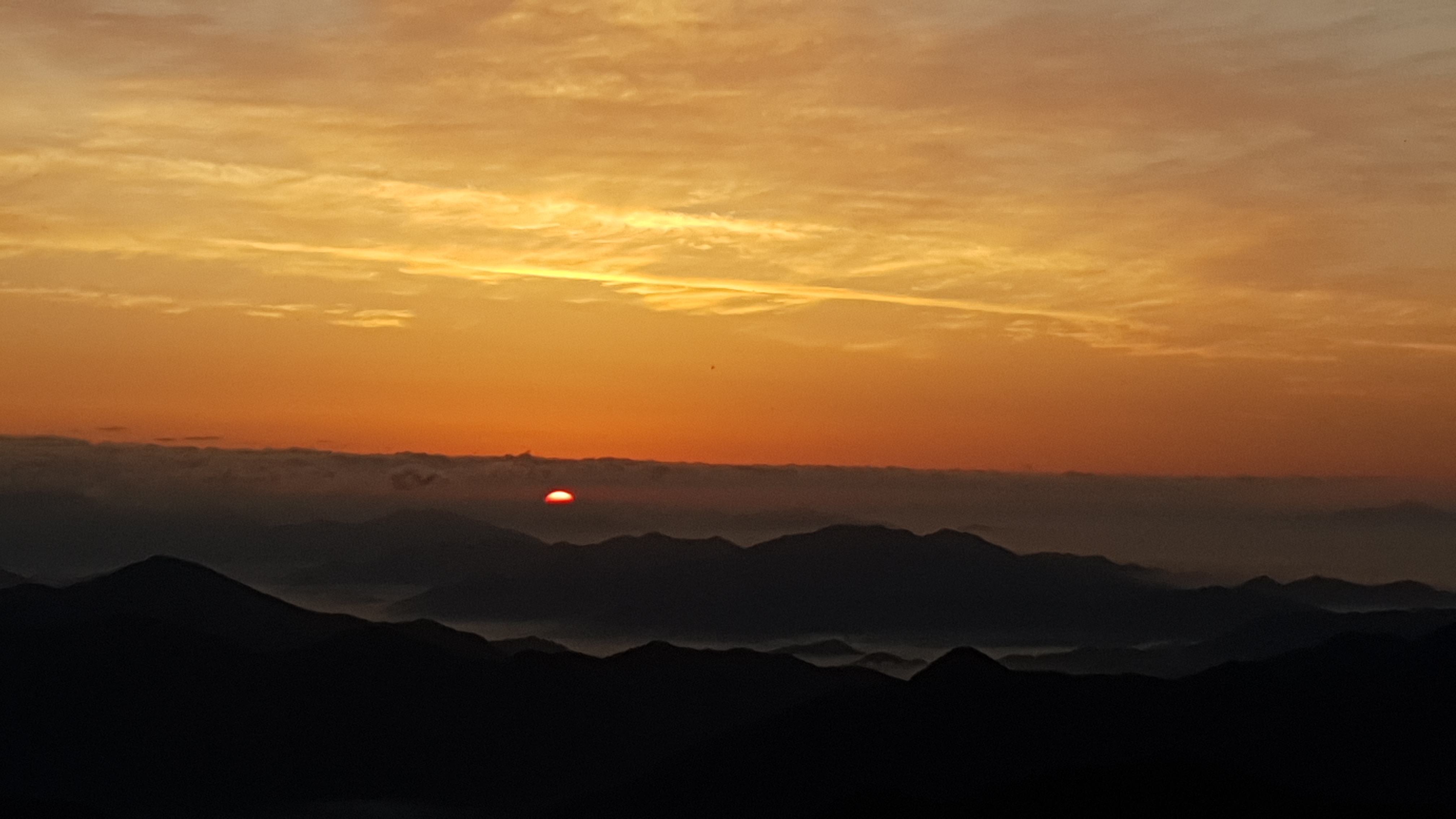 눈을 뜨고 시간을 보니 04시 45분 이다. 해 뜨는 시간이 05시 15분 라고 하니 일어나 준비하고 텐트 밖으로 나오자 붉은빛이 감돈다. 정상으로 사브작 사브작 올라가자 골짜구 골짜구 마다 와 허연물이 한 그득하다 ㅎㅎ 지금 바다에 온겨??