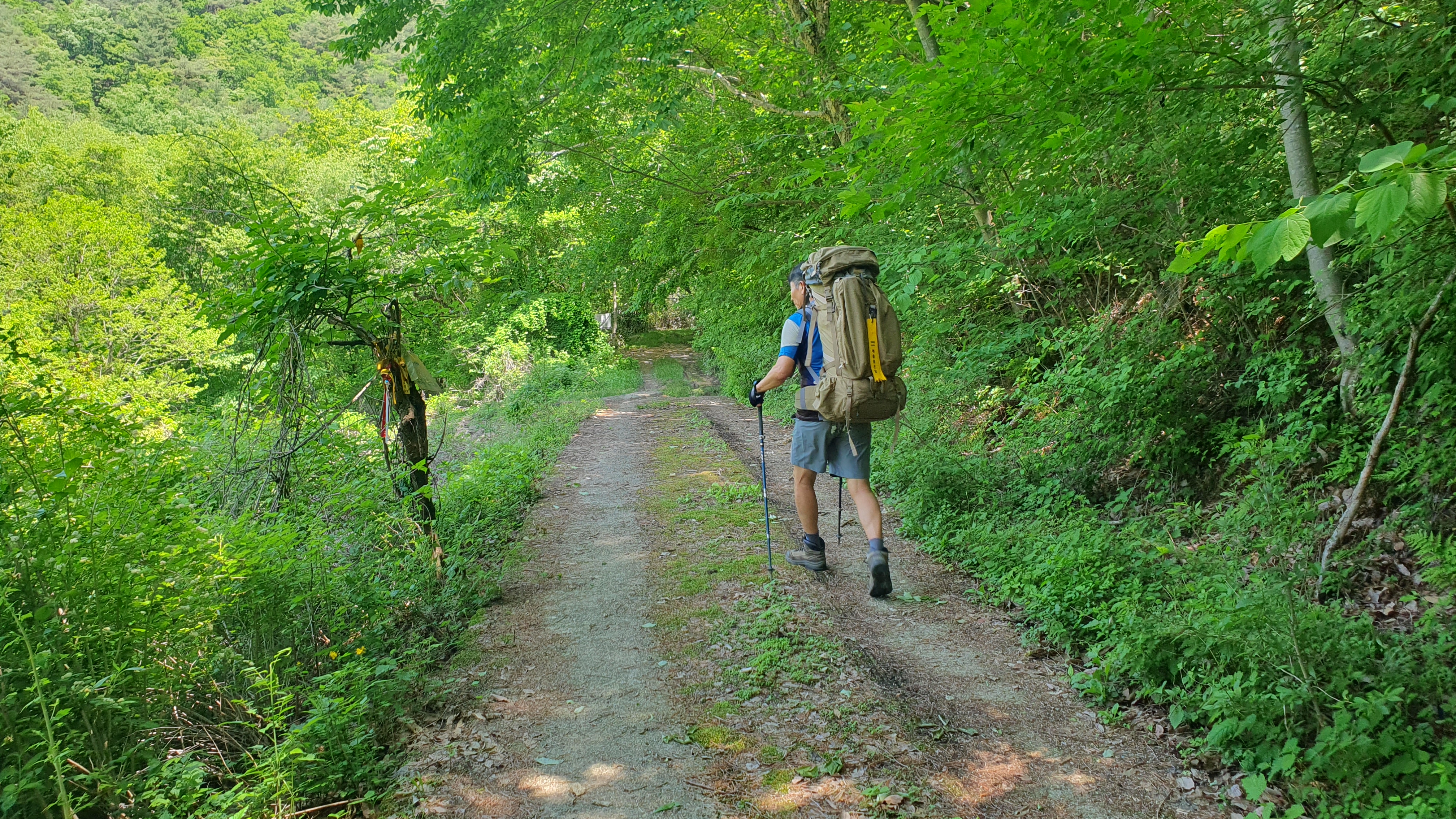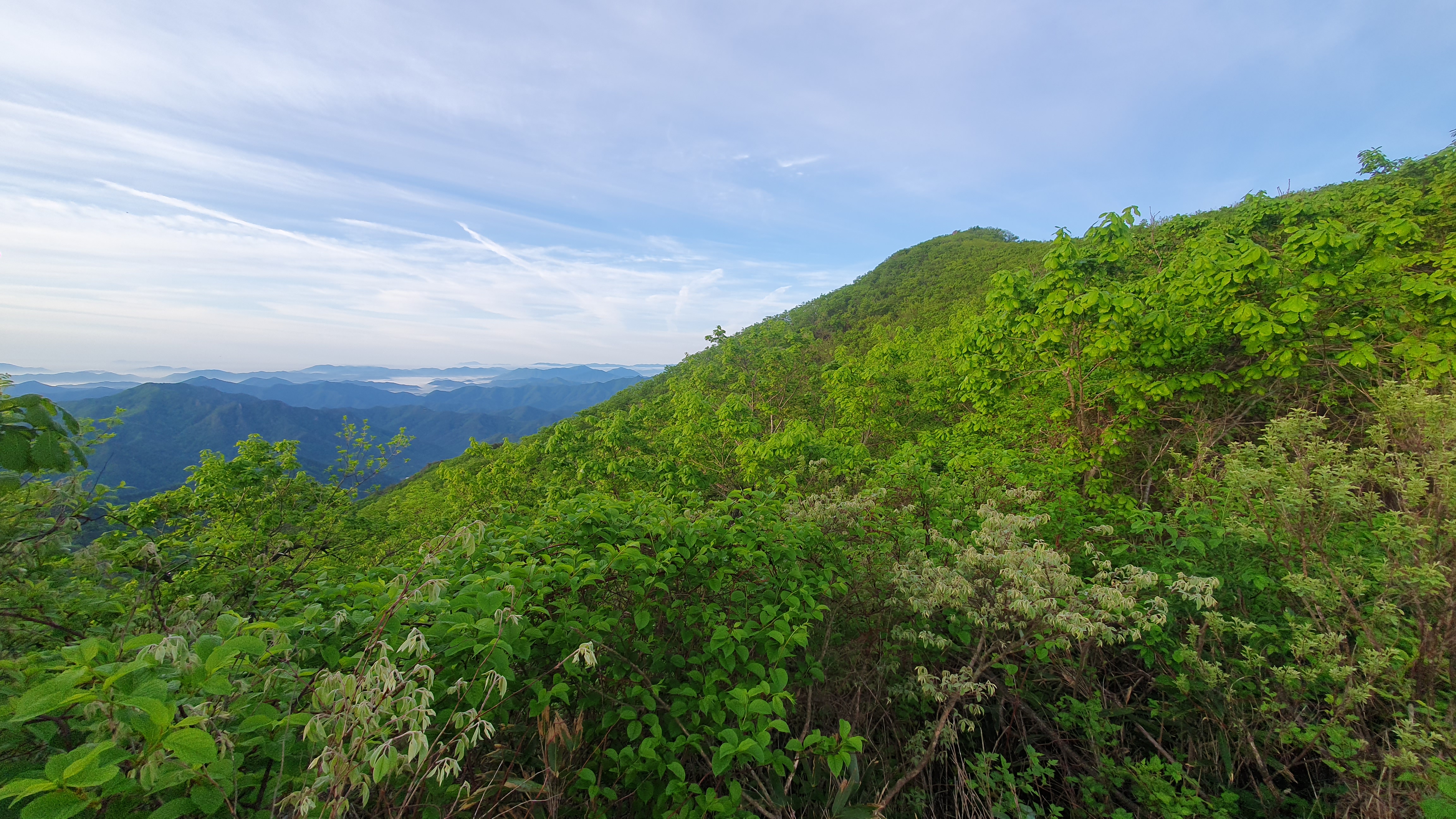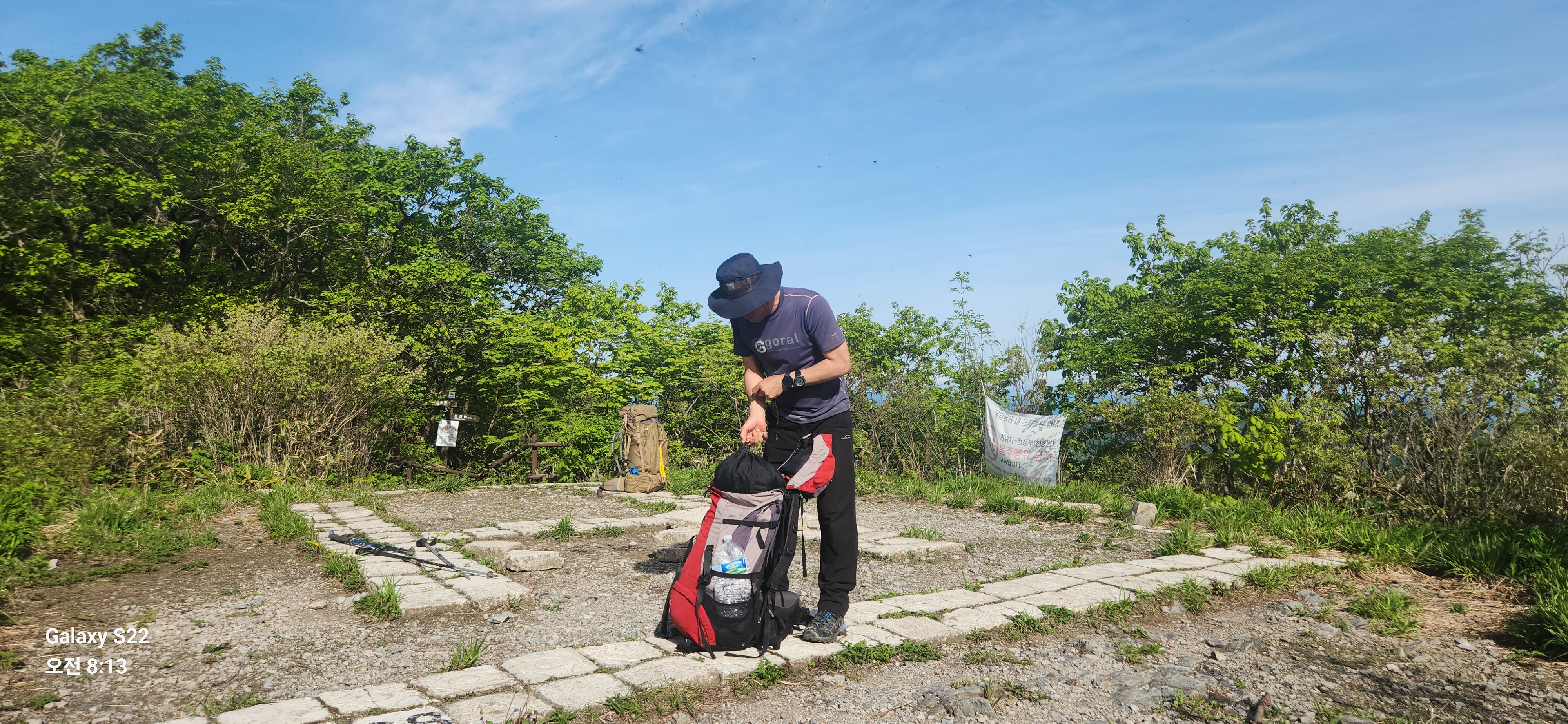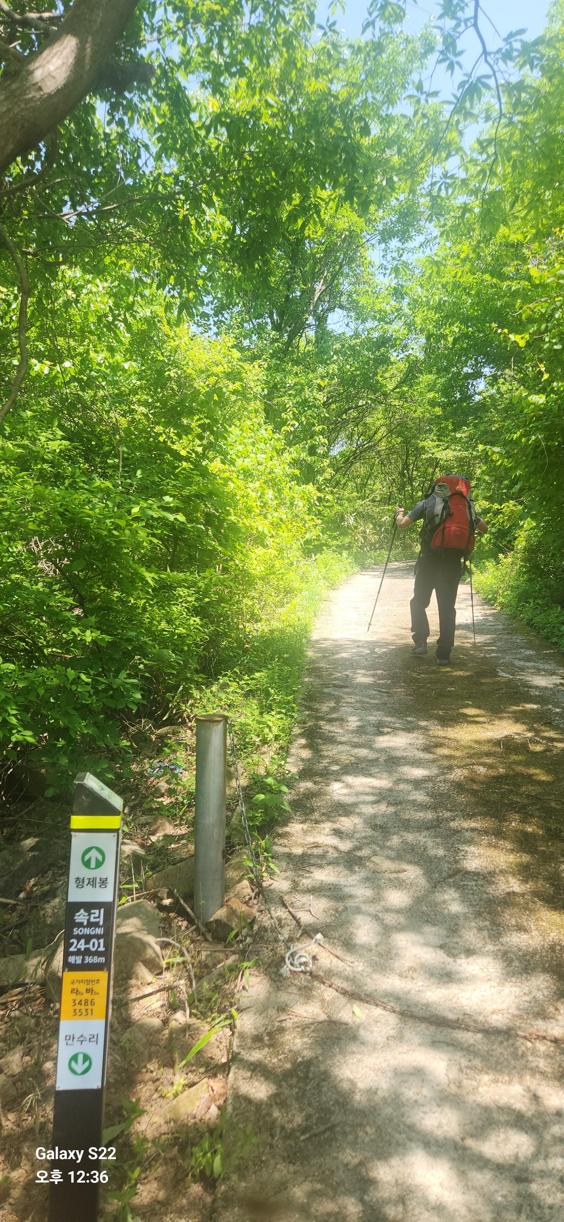 밤새 묵으쓰니 좀 가벼워졌겠지 ㅋㅋ 만수리로 궈궈 ~~ 이후 어제 왔던 대간길을 되짚어 진행한다. 전 날 오후에는 더웠지만 산바람이 계속 불어와 그렇게 더운 줄 몰랐으나 오늘은 바람 한점 없이 속된 말로 x라게 덥다 ㅋ. 다행히 습도가 없어 그나마 걸을만했고