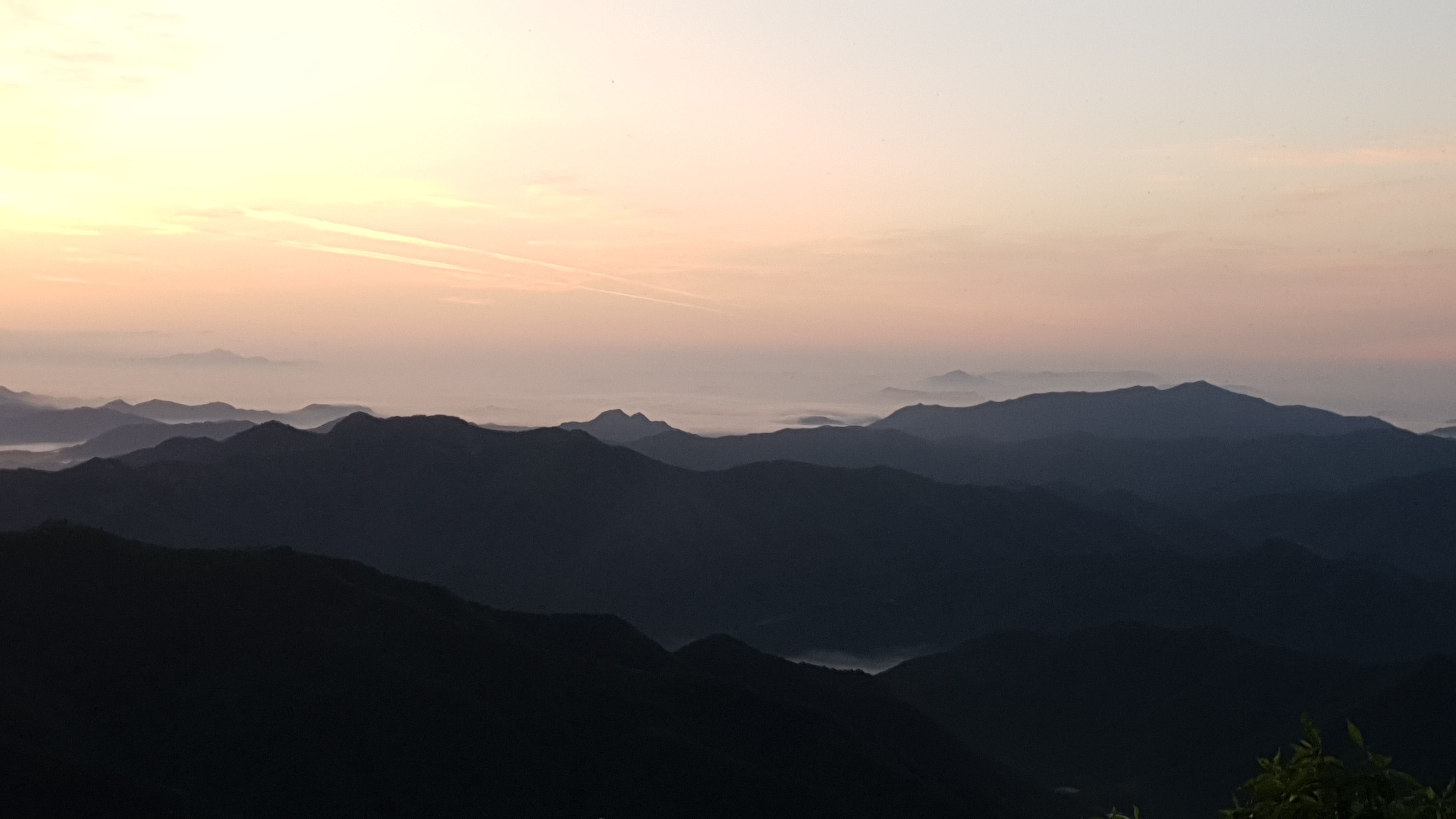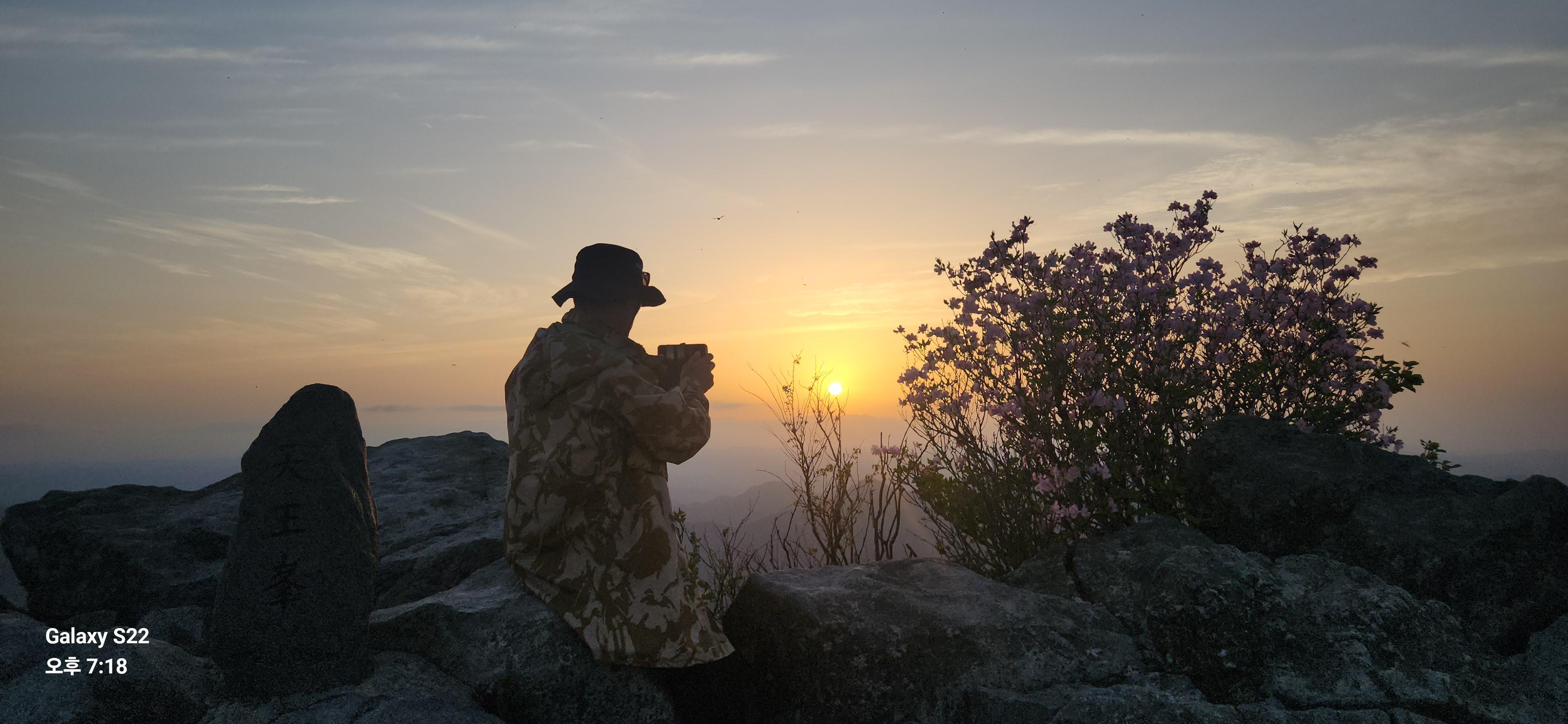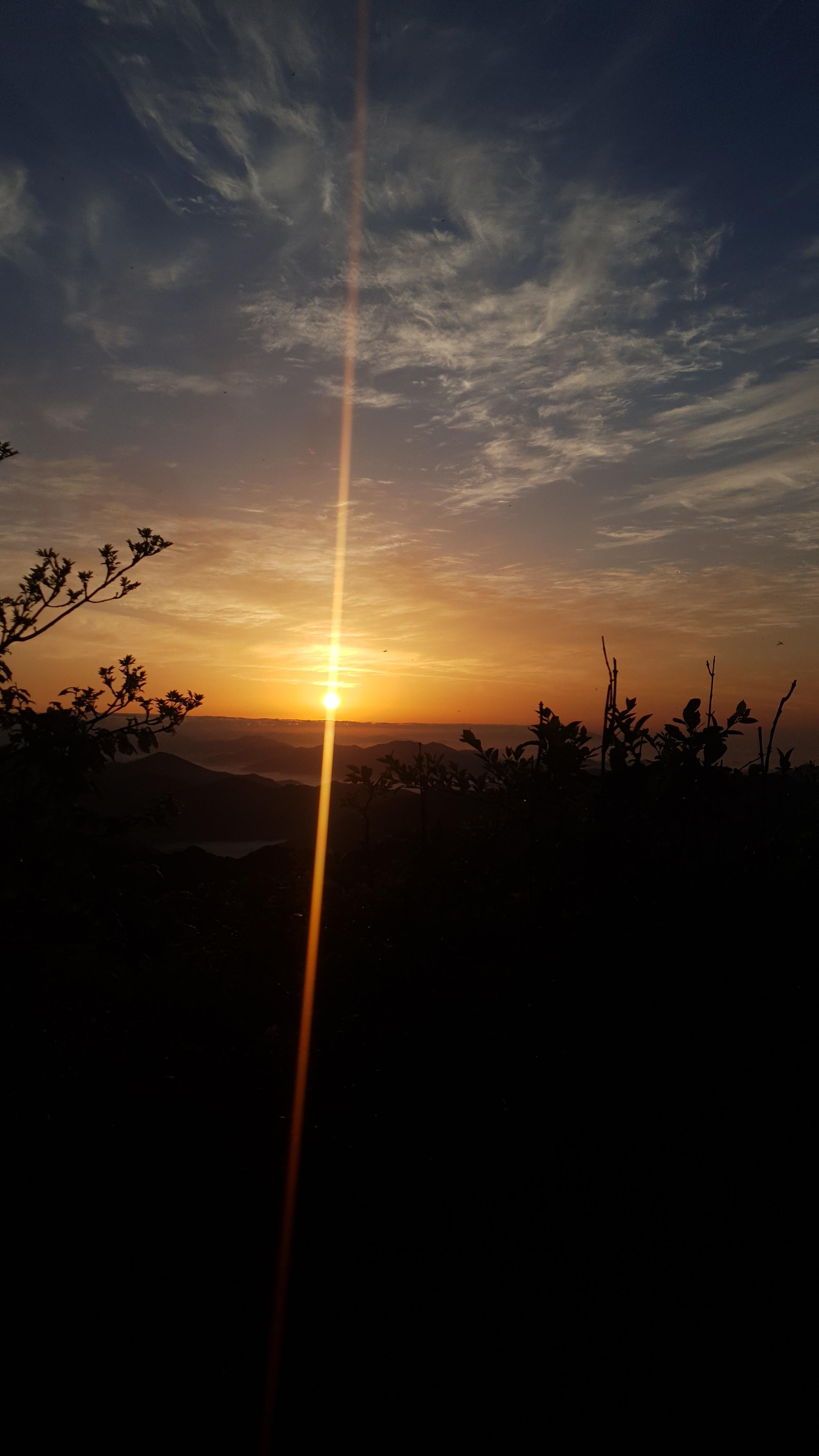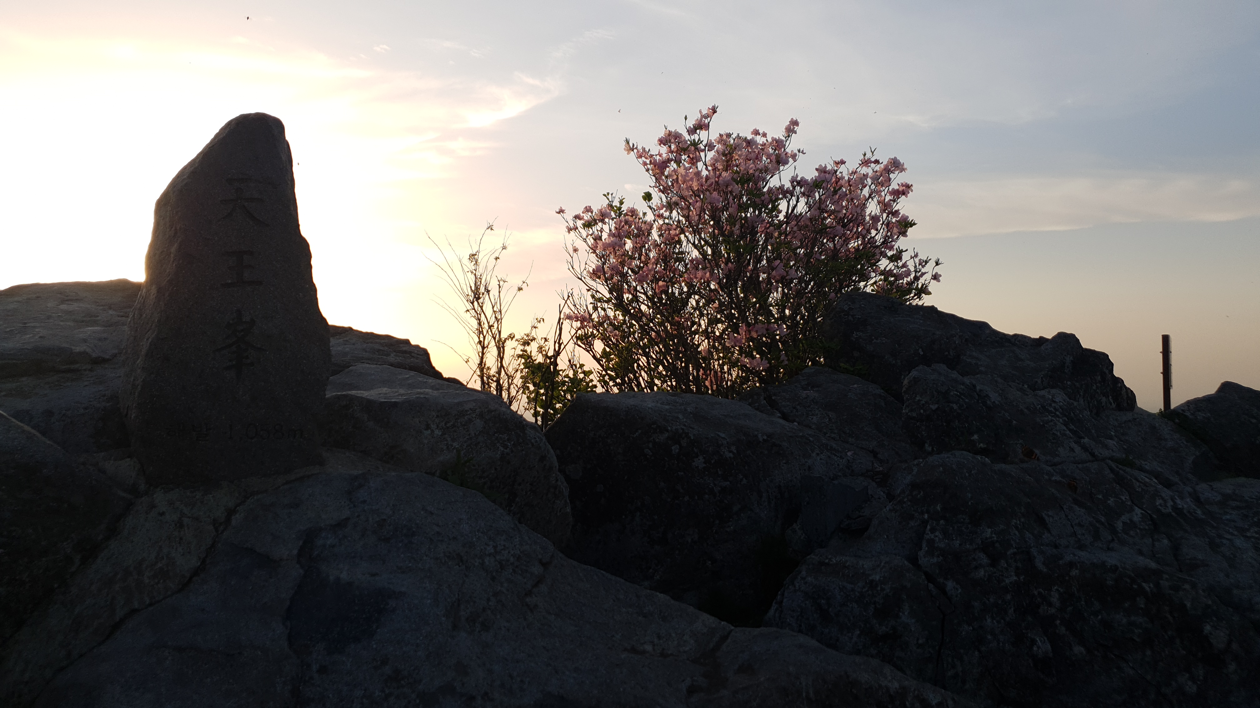 정상에 도착하여 이리저리 사진을 찍고 시간을 보니 여섯 시 반이다 해넘이 시간을 보자 정확히 일곱 시 반이 나온다. 해가 떨어지려면 한 시간가량이 남았다. 숙소인 헬기장에 내려가 텐트 치고 다시 올라오려면 시간이 빠듯할 것 같아 정상에서 좀 더 사진을 찍으며 이바구를 하며 개긴돠!! ㅋㅋ