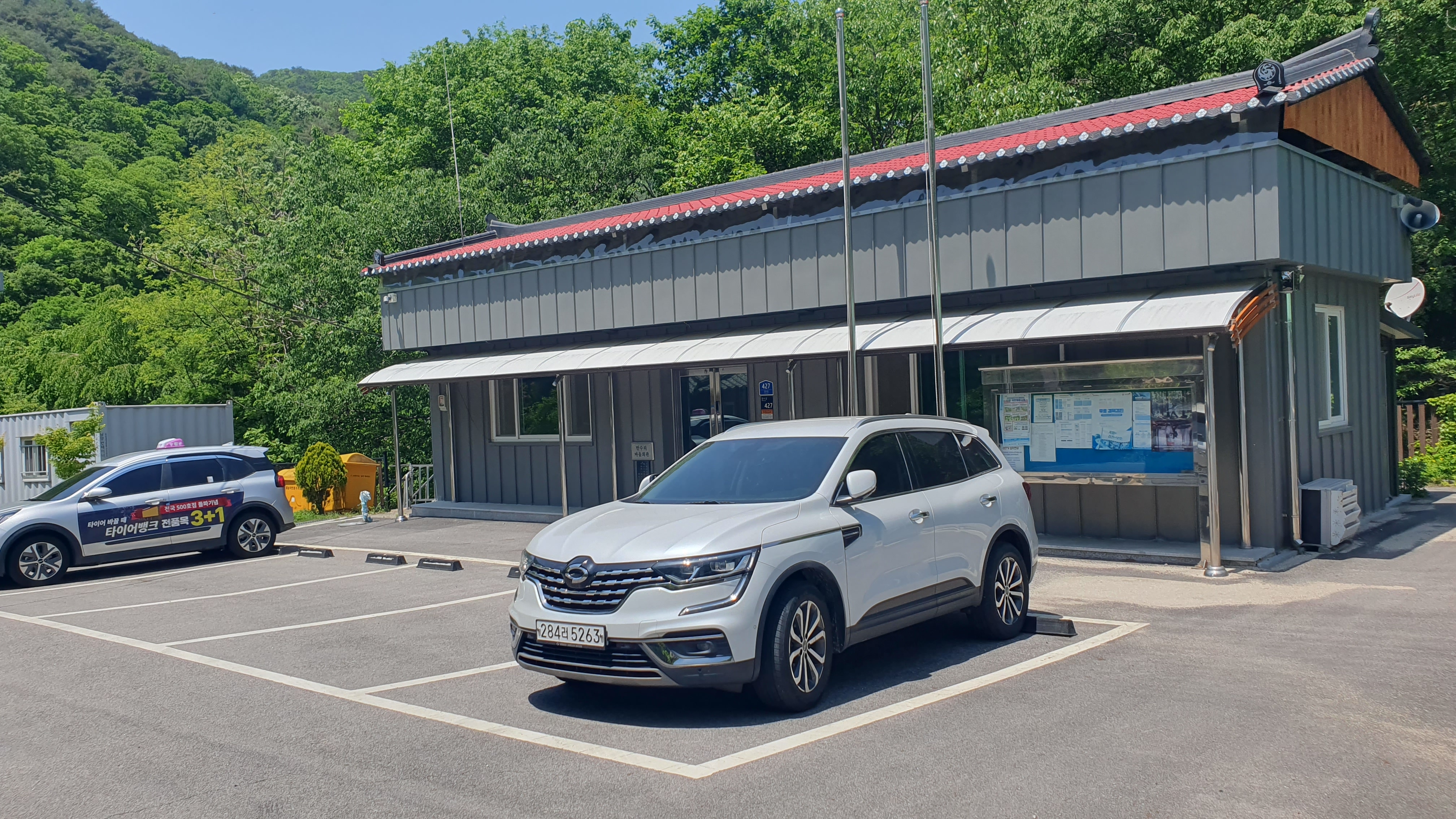 만수리(구 묘막리) 마을회관앞에 도착하고 이곳 마을회관 역시 다시 신축 하였다