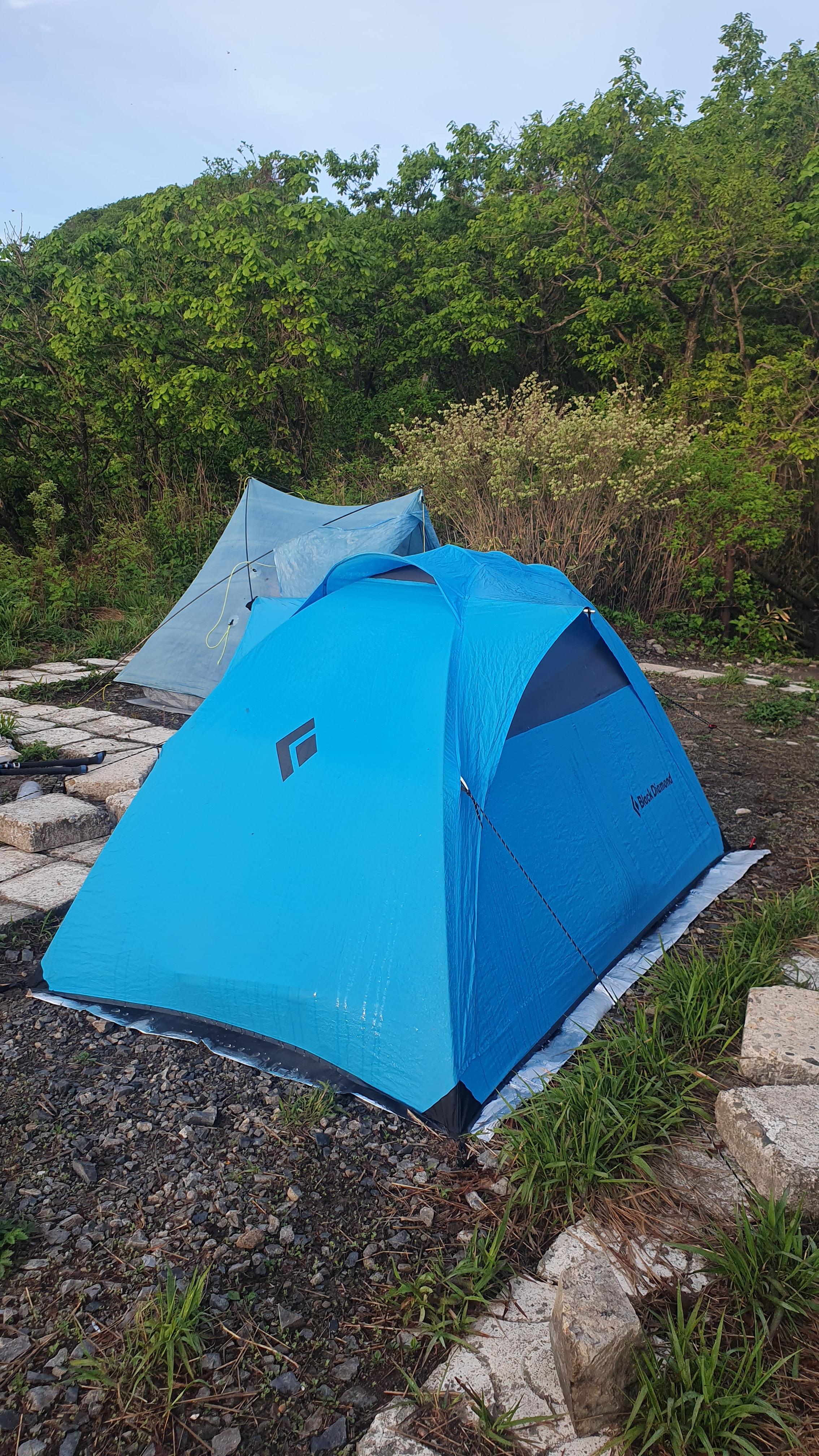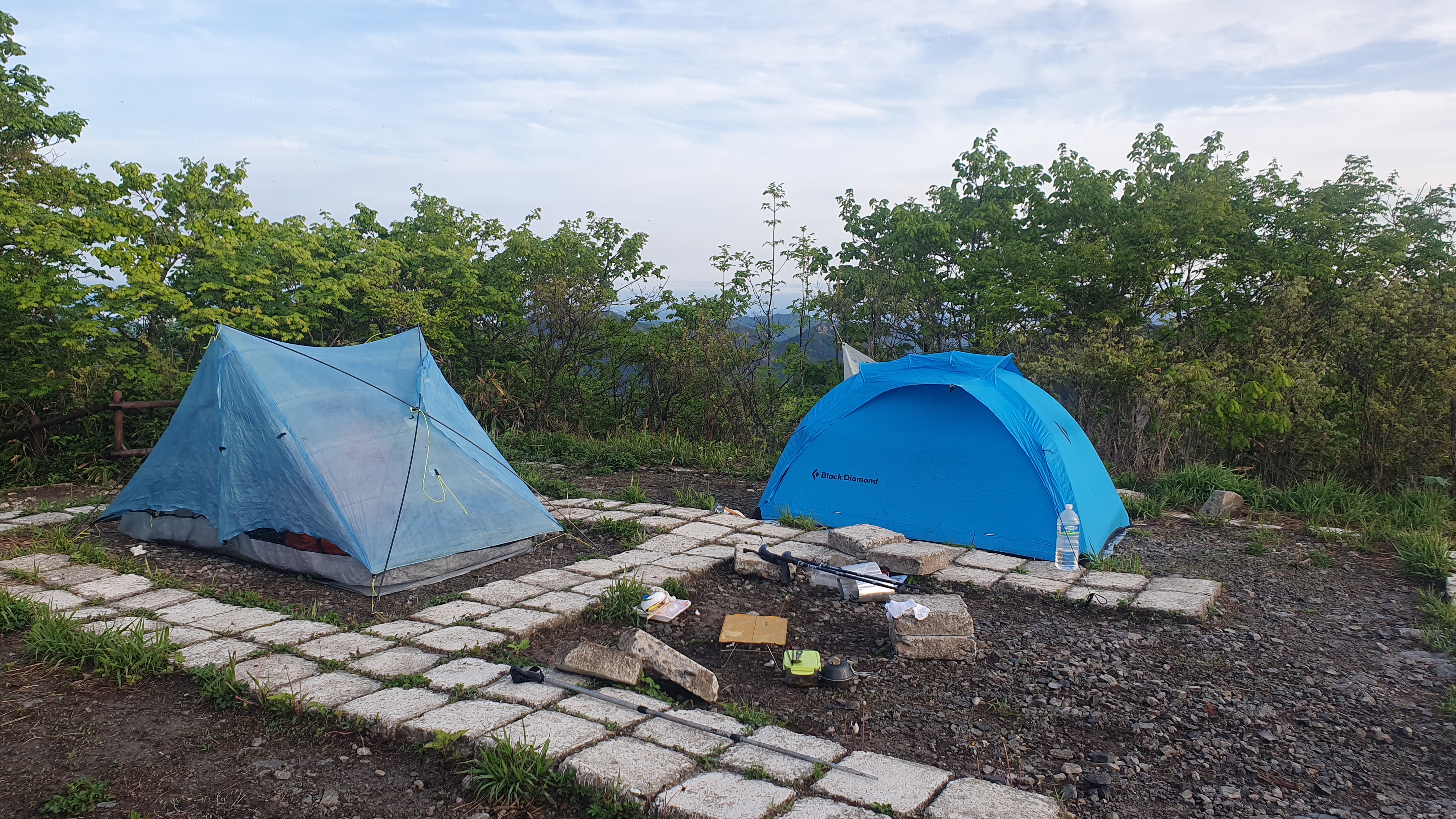 정상에서 해맞이를 하고 내려와 일회용 삼계탕에 누룽지를 넣어 죽을 끓여 먹고는 서리에 습격받아 ㅎ 물이 줄줄 흐르는 텐트를 말린다. 이제 아침 여덟 시 인데 해빛이 따갑고 덥다. 옅은 파랭이와 오리지널 파랭이 ㅍㅎㅎㅎ