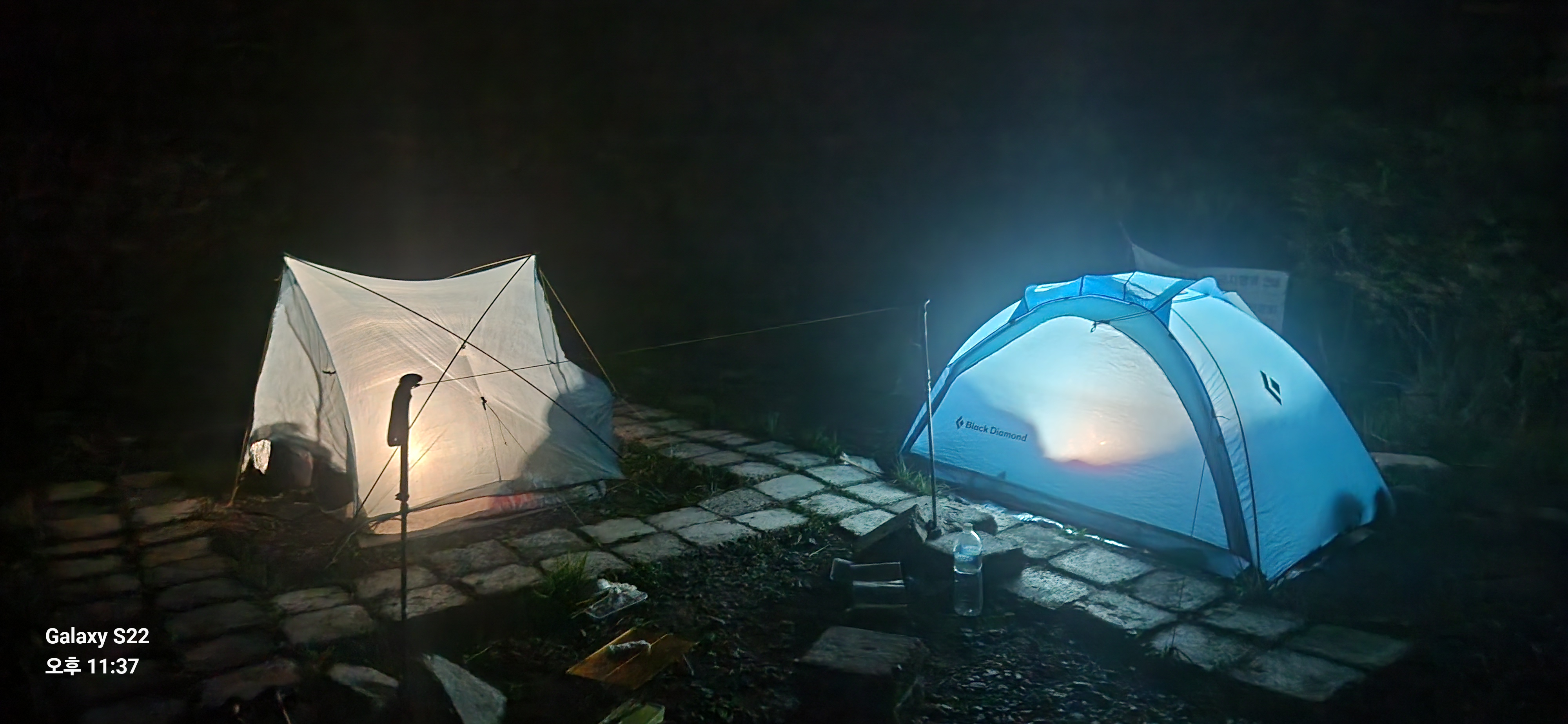 해넘이 끝내고 조심조심 박터인 헬기장에 도착해 서둘러 텐트 치고 만찬준비를 한다. 챙겨 온 삼겹이, 주님, 음식 등등을 꺼내고는 가만히 생각하니 등짝이 오싹해짐을 느낀다. 헉 가스가 읍따! 에고 내가 가스 가져오기로 했는데 아무리 찿아봐도 읍따.