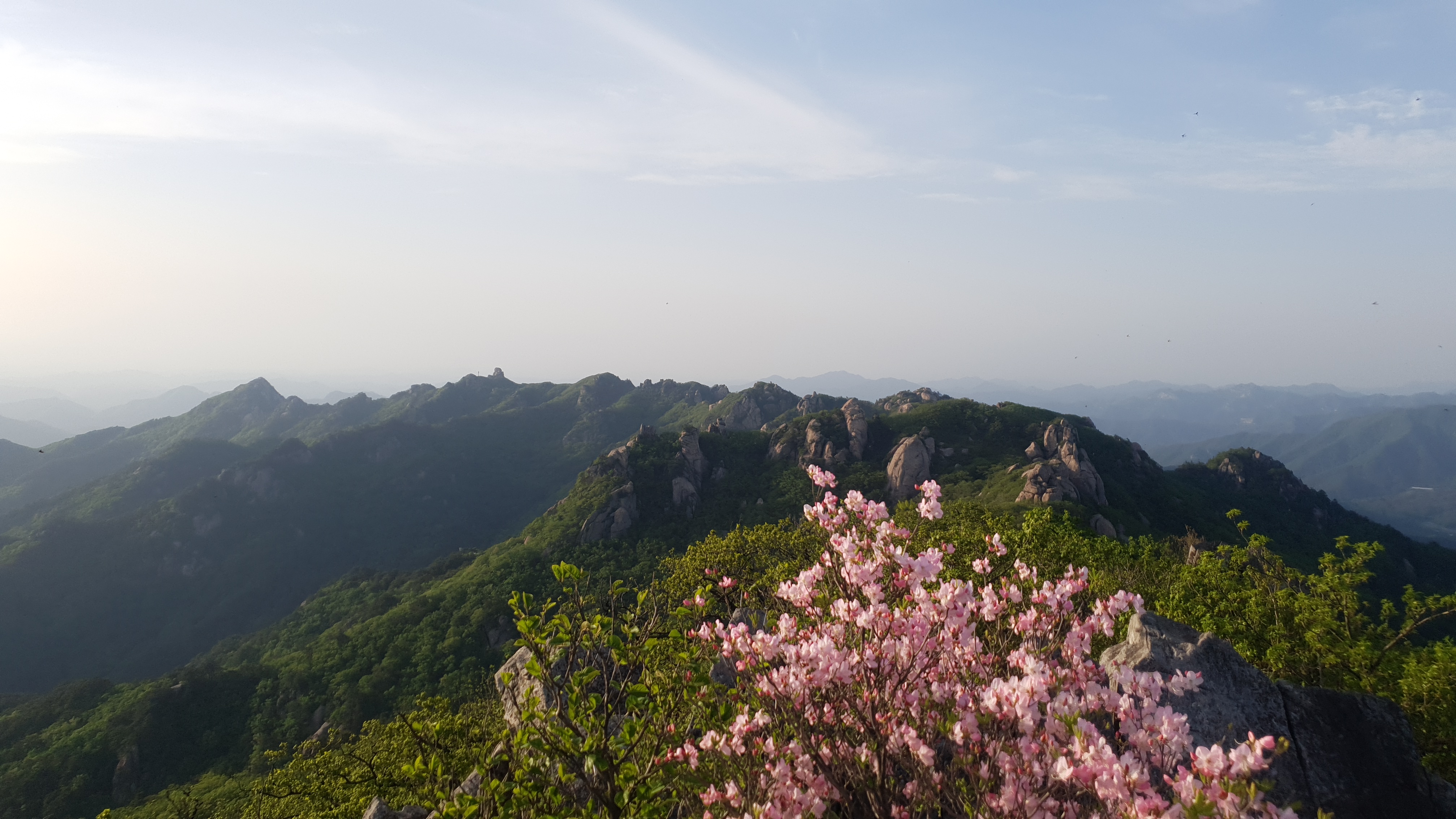 철쭉과 함께 속리주능을 찍어본다 젤 왼쪽 속리 서북릉의 관음봉