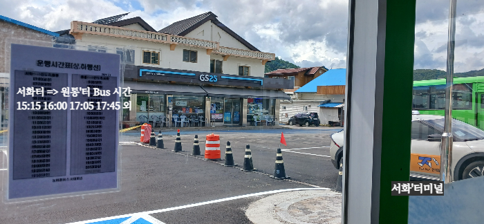 서화터미널 15:15 원통행'Bus 승차
