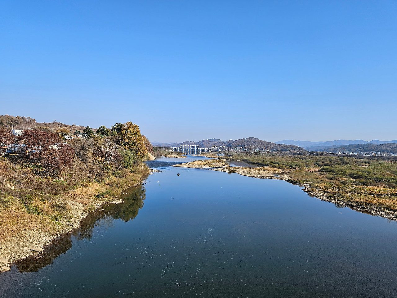 좌쪽 제방도로따라 가는 것이 둘레길 누리길이다
