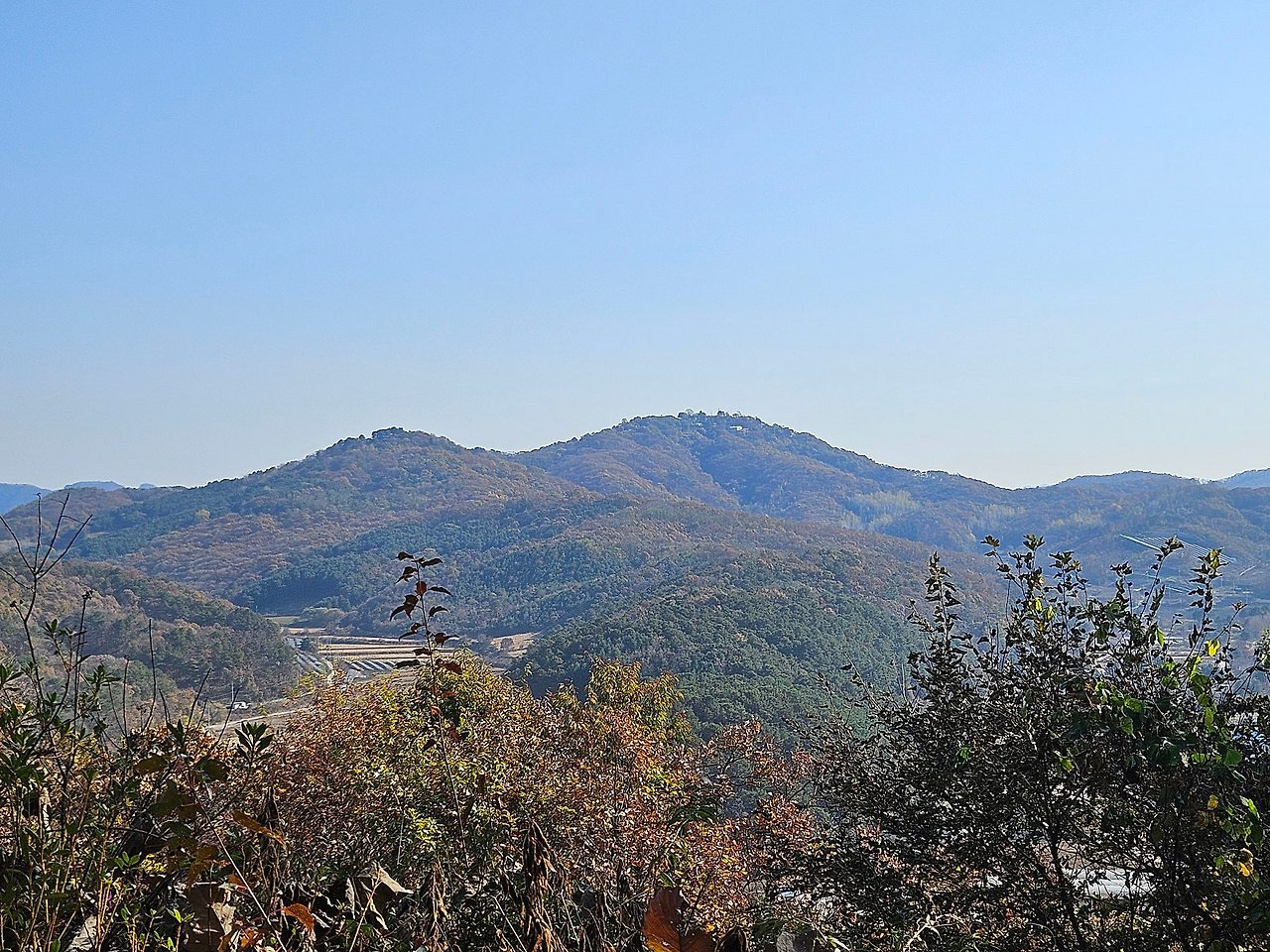뒷산줄기는 앞 산줄기에 가려서 안보이지만