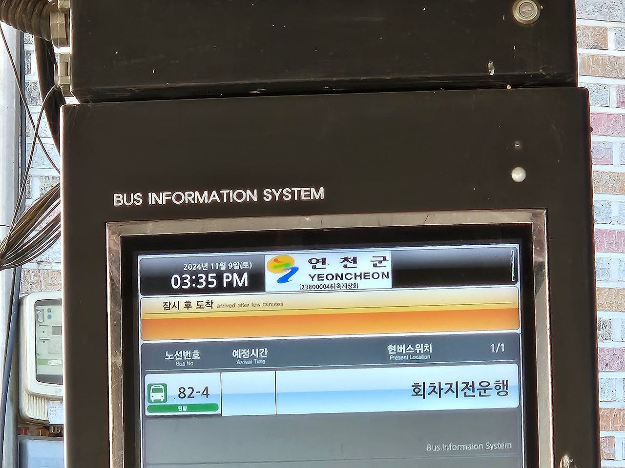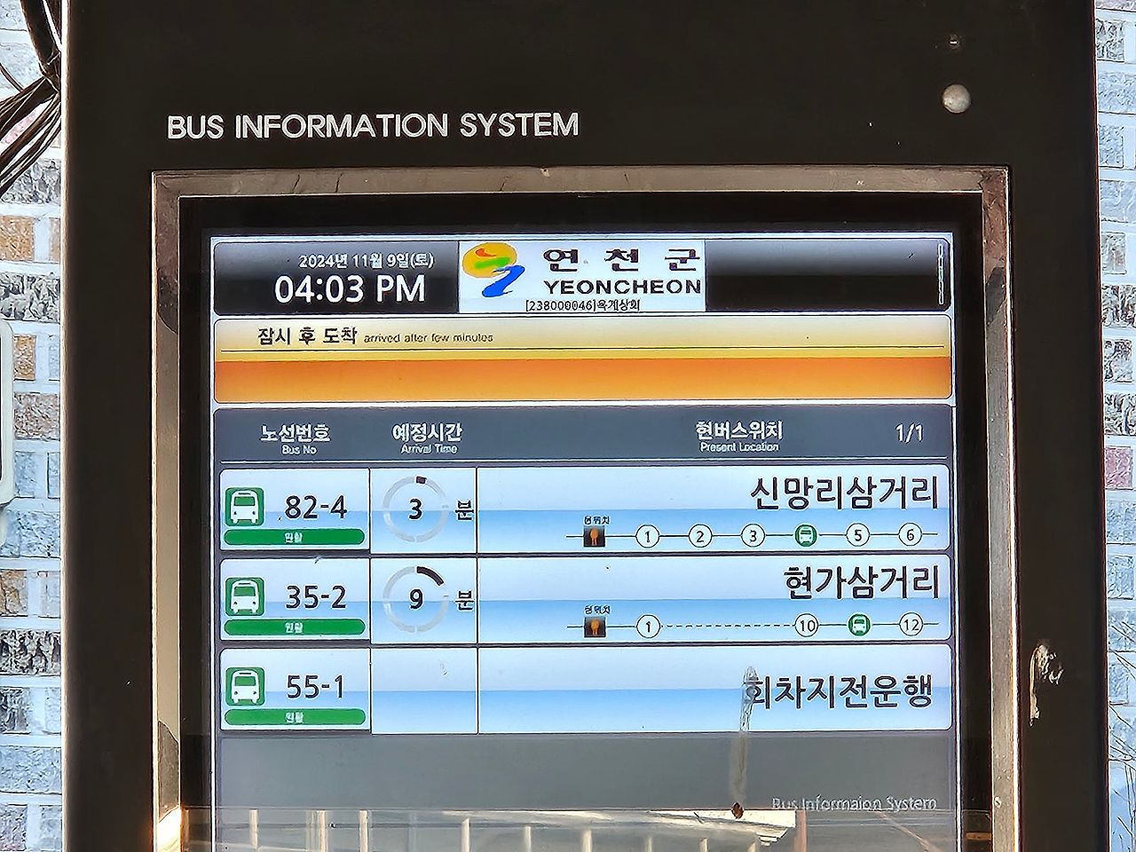 정자안에 버스안내전광판이 있어
