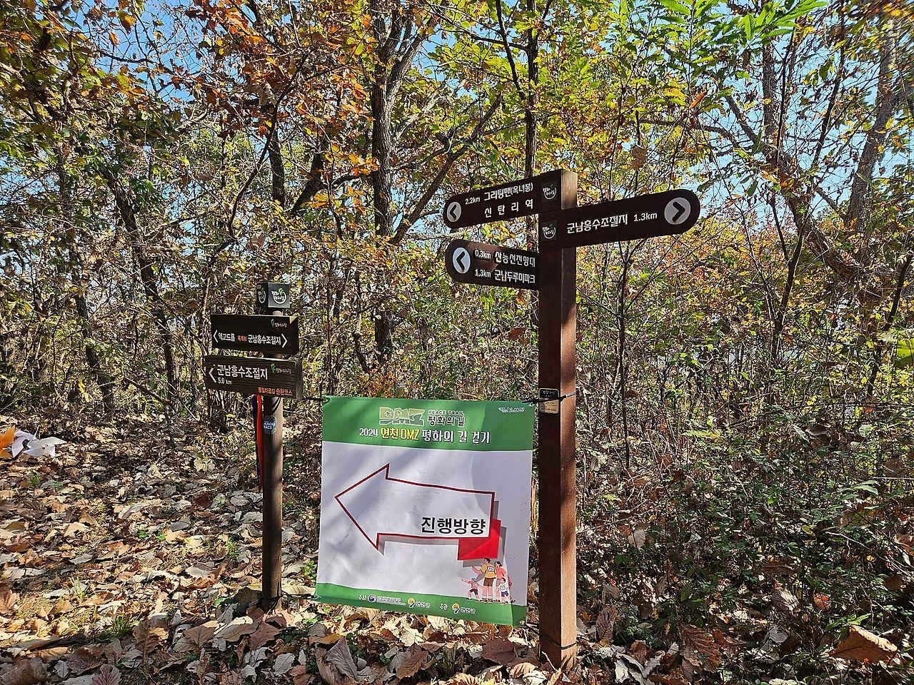 우쪽으로 가면 평화누리길 안내판과