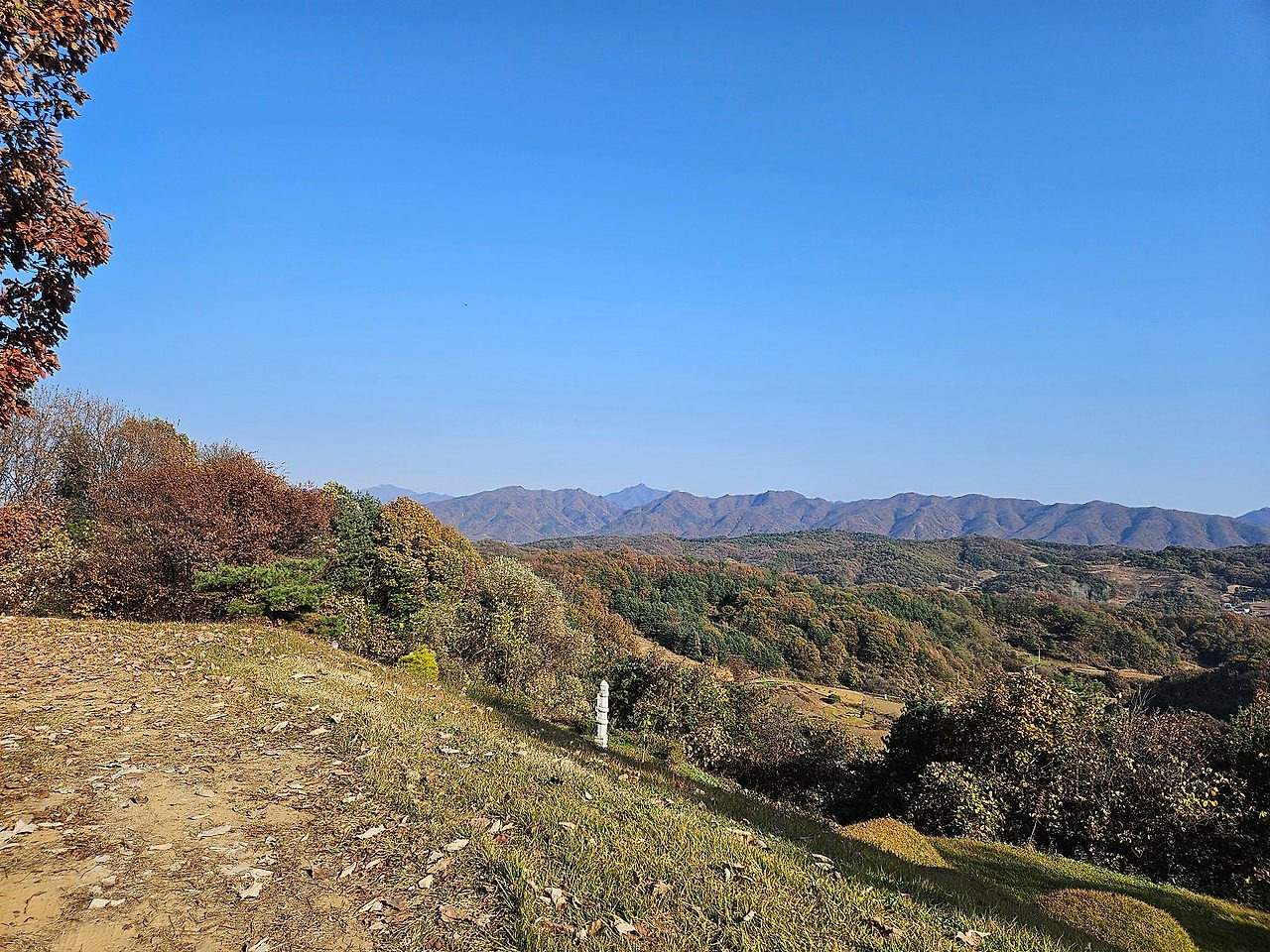 능선 좌쪽 사면 비포장길로 가다가