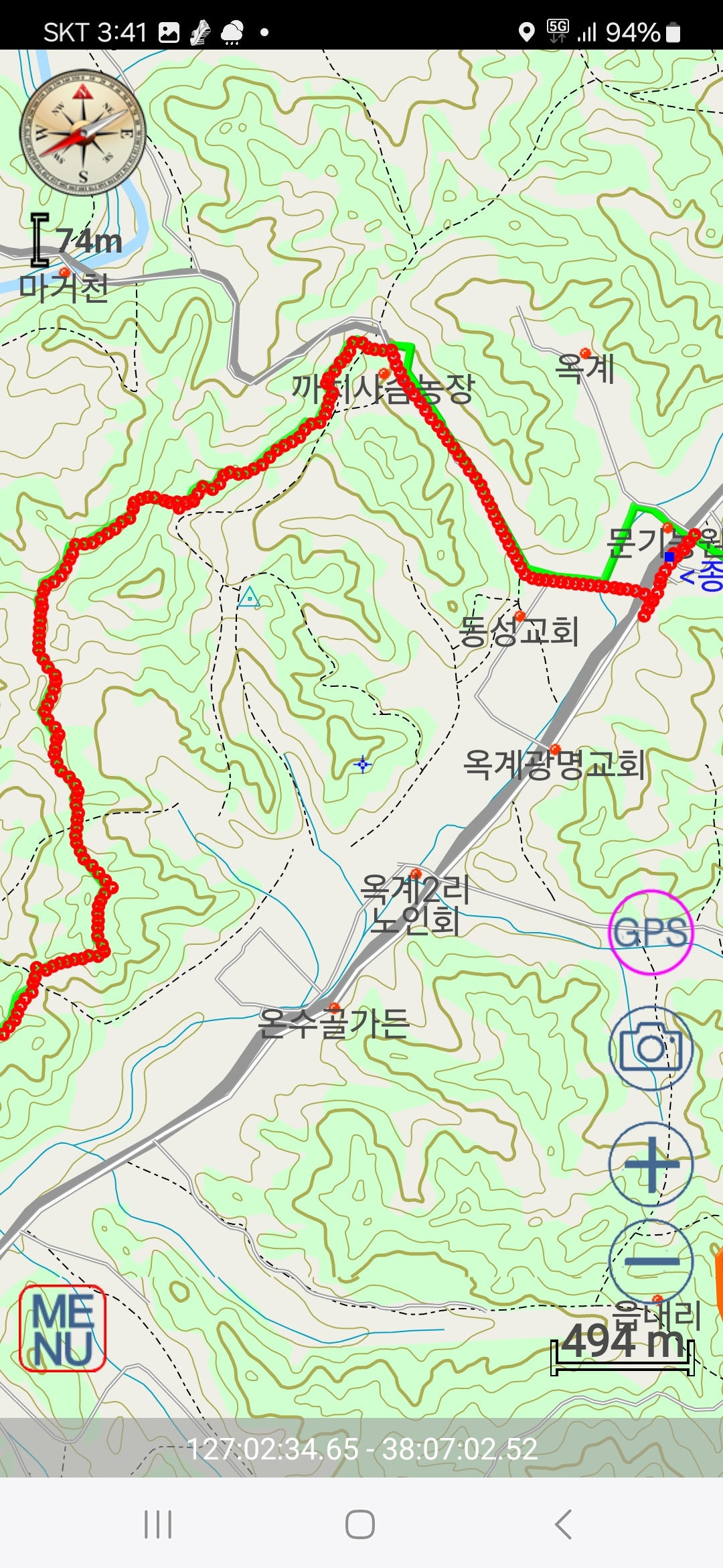 어디를 : 경기둘레길10구간과 평화누리길11구간 나머지구간과 이어지는 경기둘레길11구간과 평화누리길12구간 답사를 하다 옥계리 삼거리에서 탈출하다