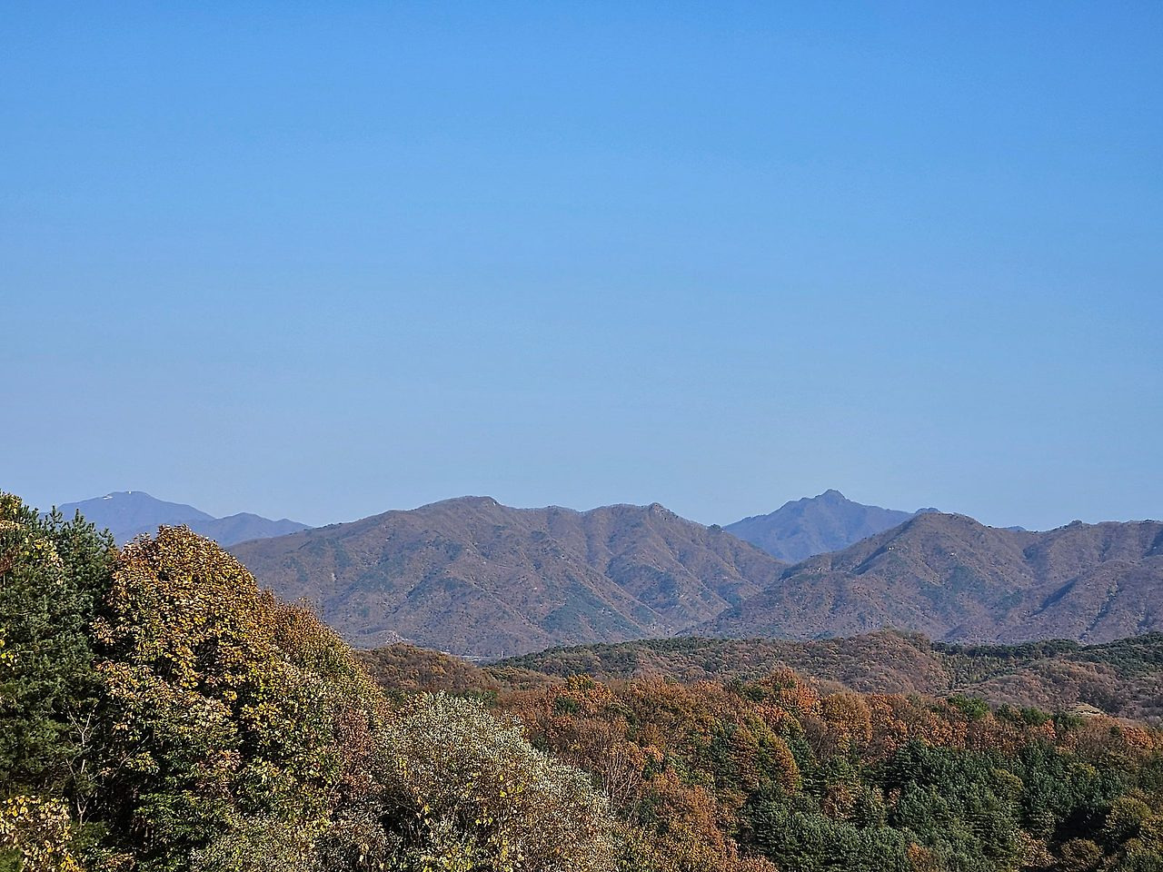 우쪽 끝으로 높은 봉이 보개산으로 추정이 되는 산줄기들 당겨본 모습