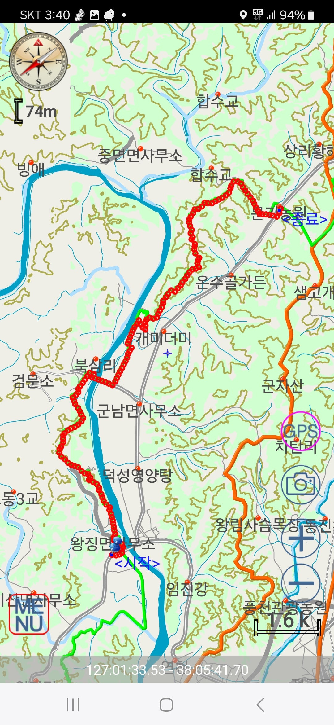 경기둘레길10구간과 평화누리길11구간이산경표궤적3