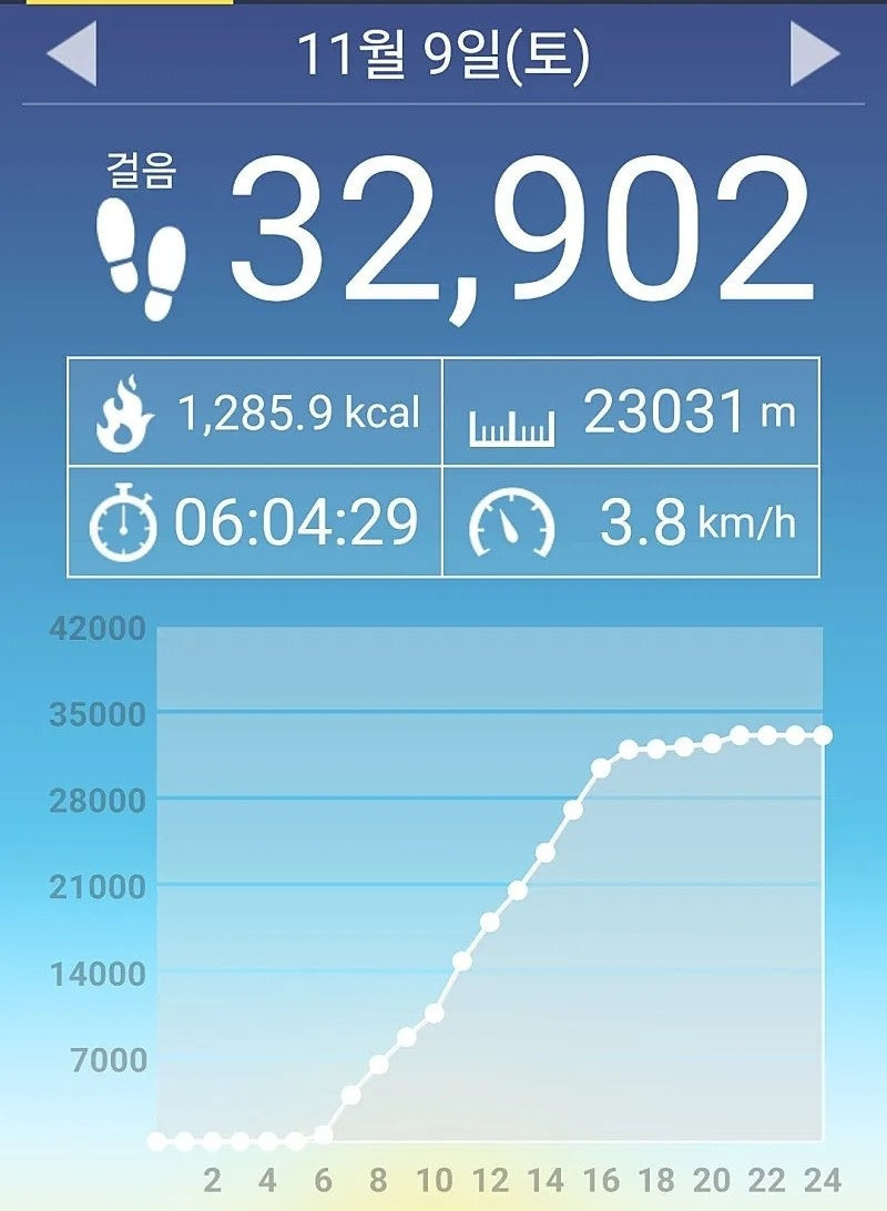 만보기기록 : 32902보 23km 6:00 시속3.8km