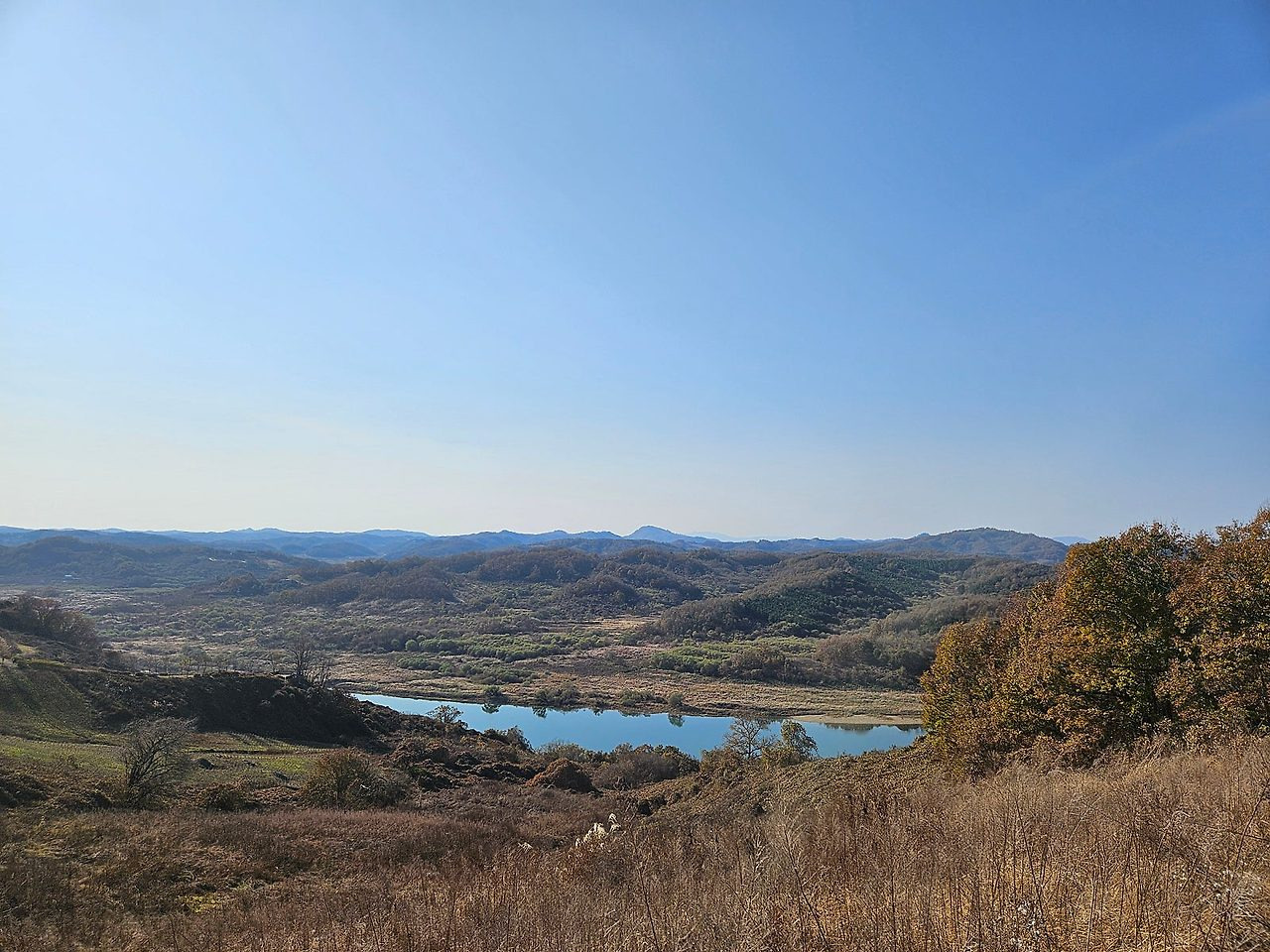 좌쪽 동송의 금학산에서 보개산 고대산으로 이어지는 멋진 하늘금이다