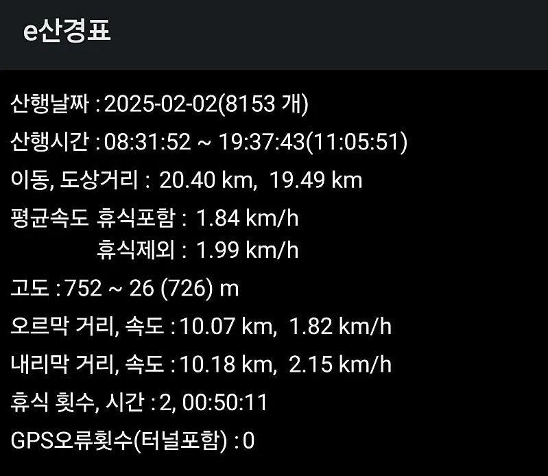 걸린시간 11:00 접근시간 0:30 단맥시간 6:20 기타시간 2:00 휴식시간 2:10