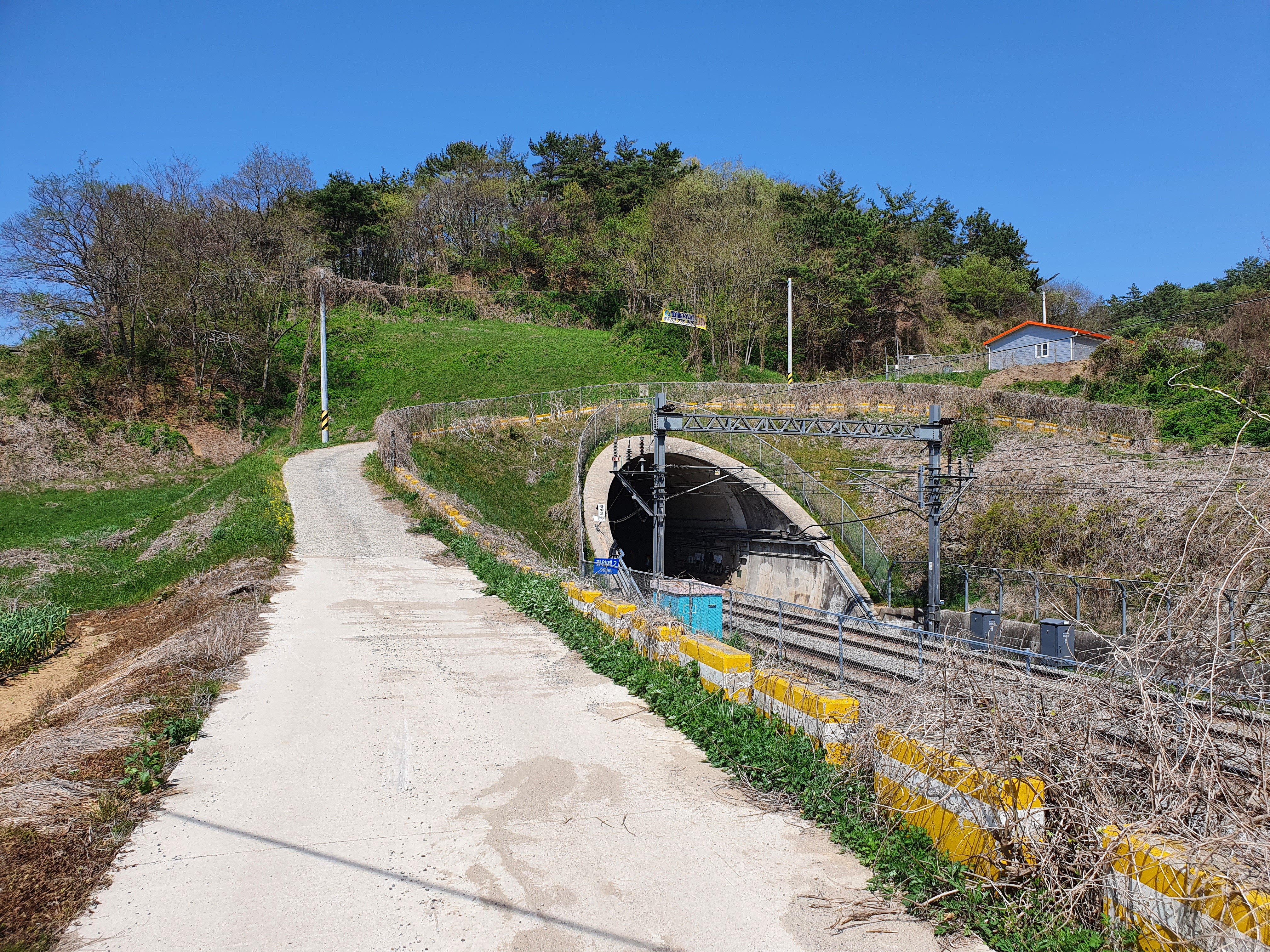 지하통로로 빠져나가 호남선철로 광암제2터널 위로 임도를 따라 올라