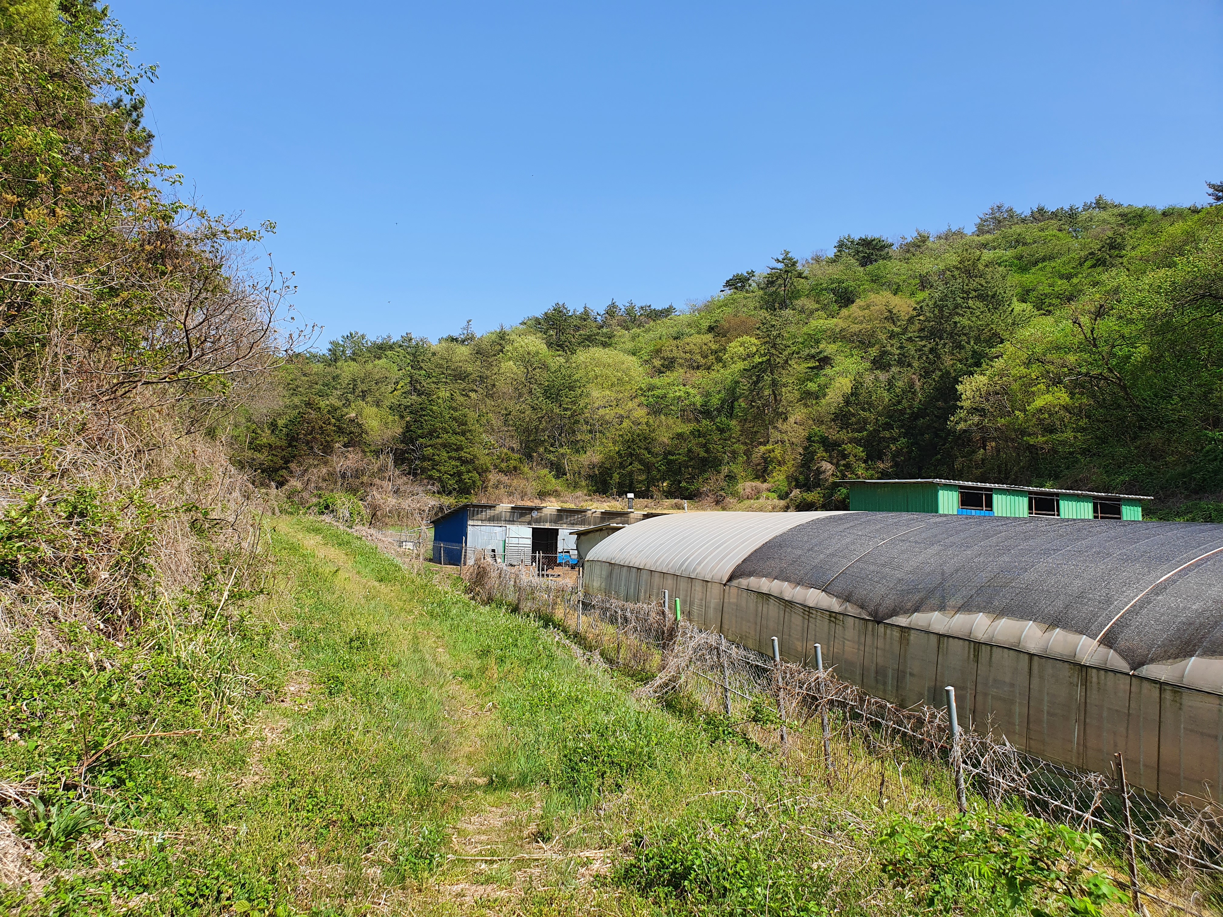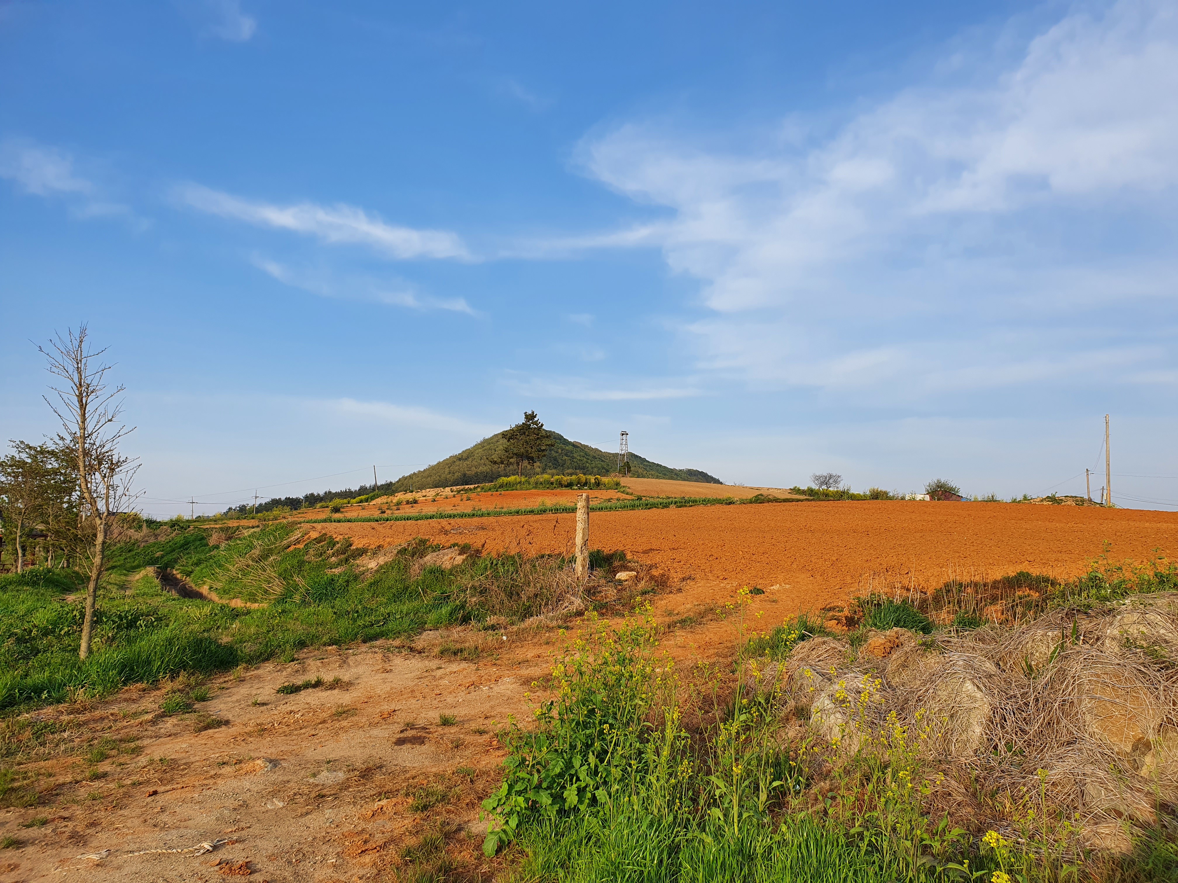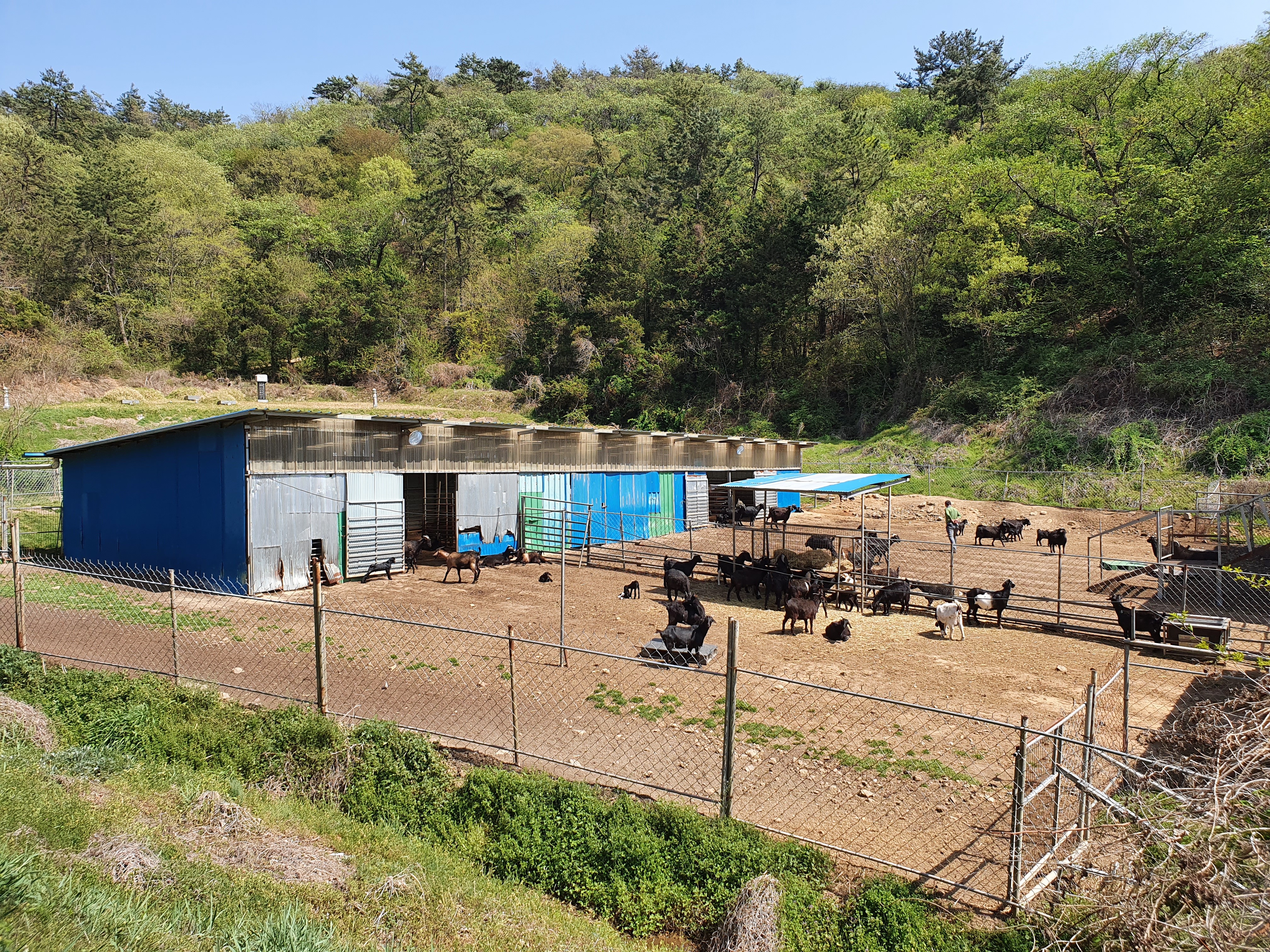 너른 축사 각갂의 색깔을 띤 염소목장 옆으로 오르면