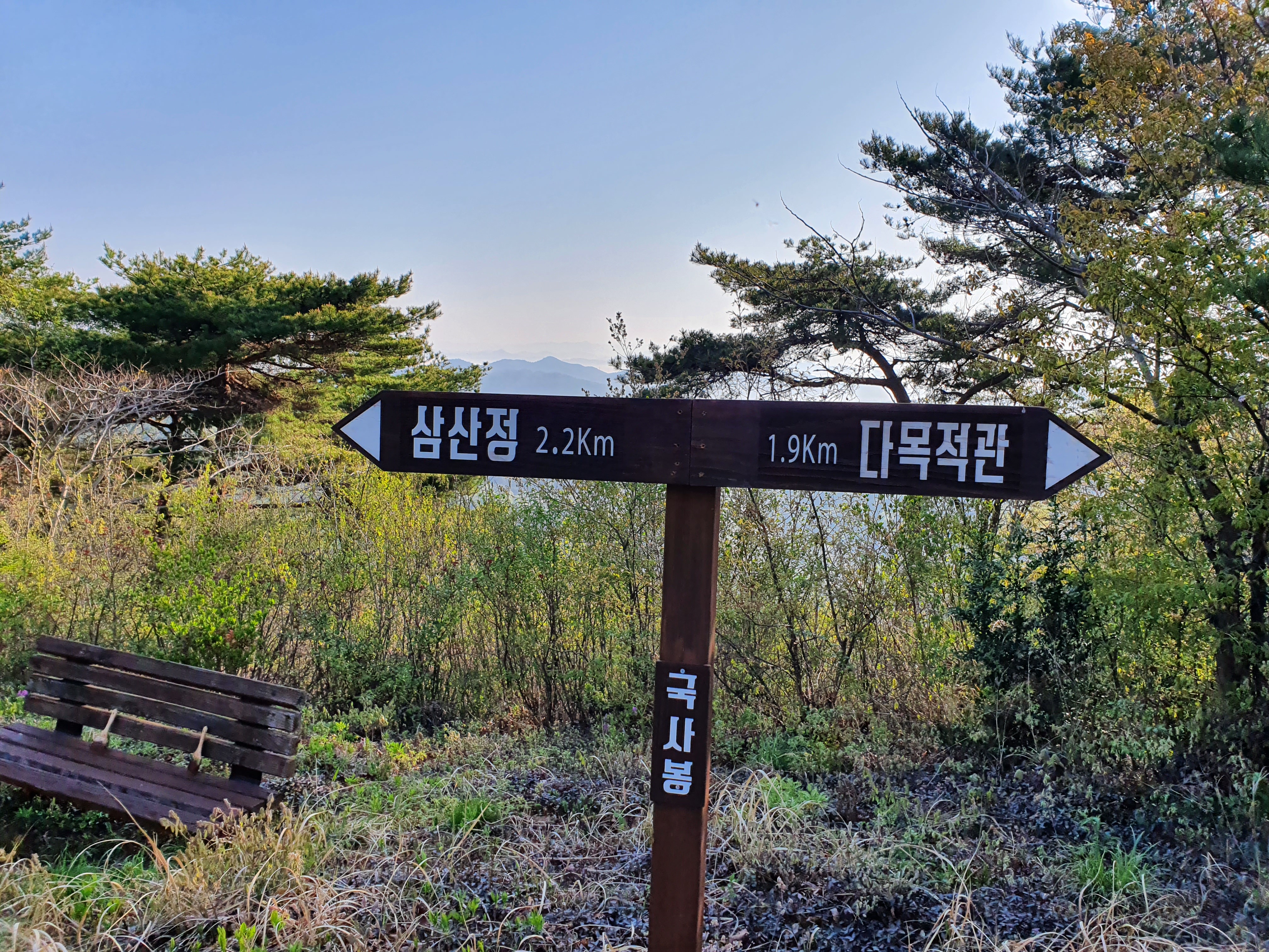 시나브로 오르니 235봉 정상에 장의자와 이정목이 있다