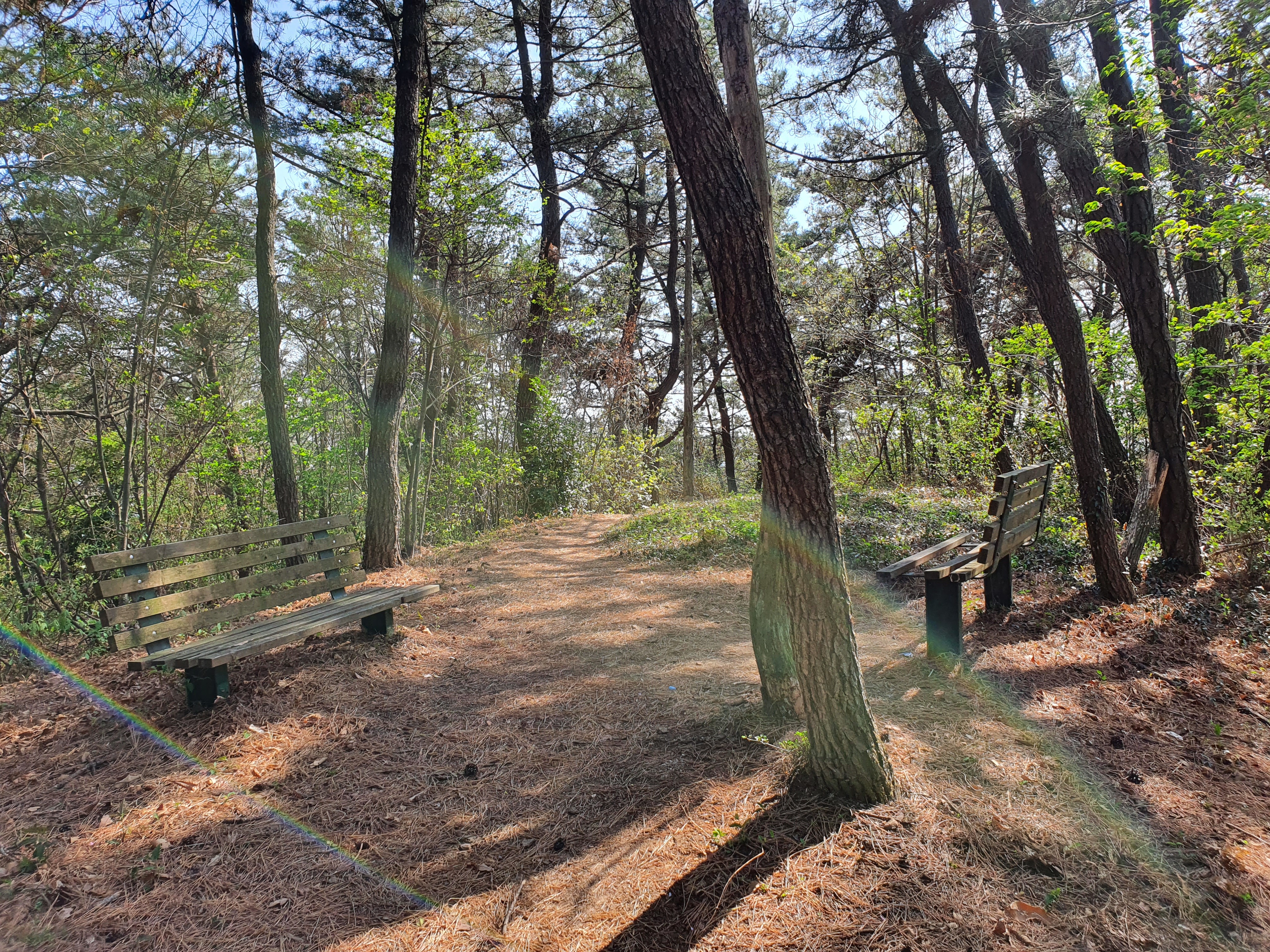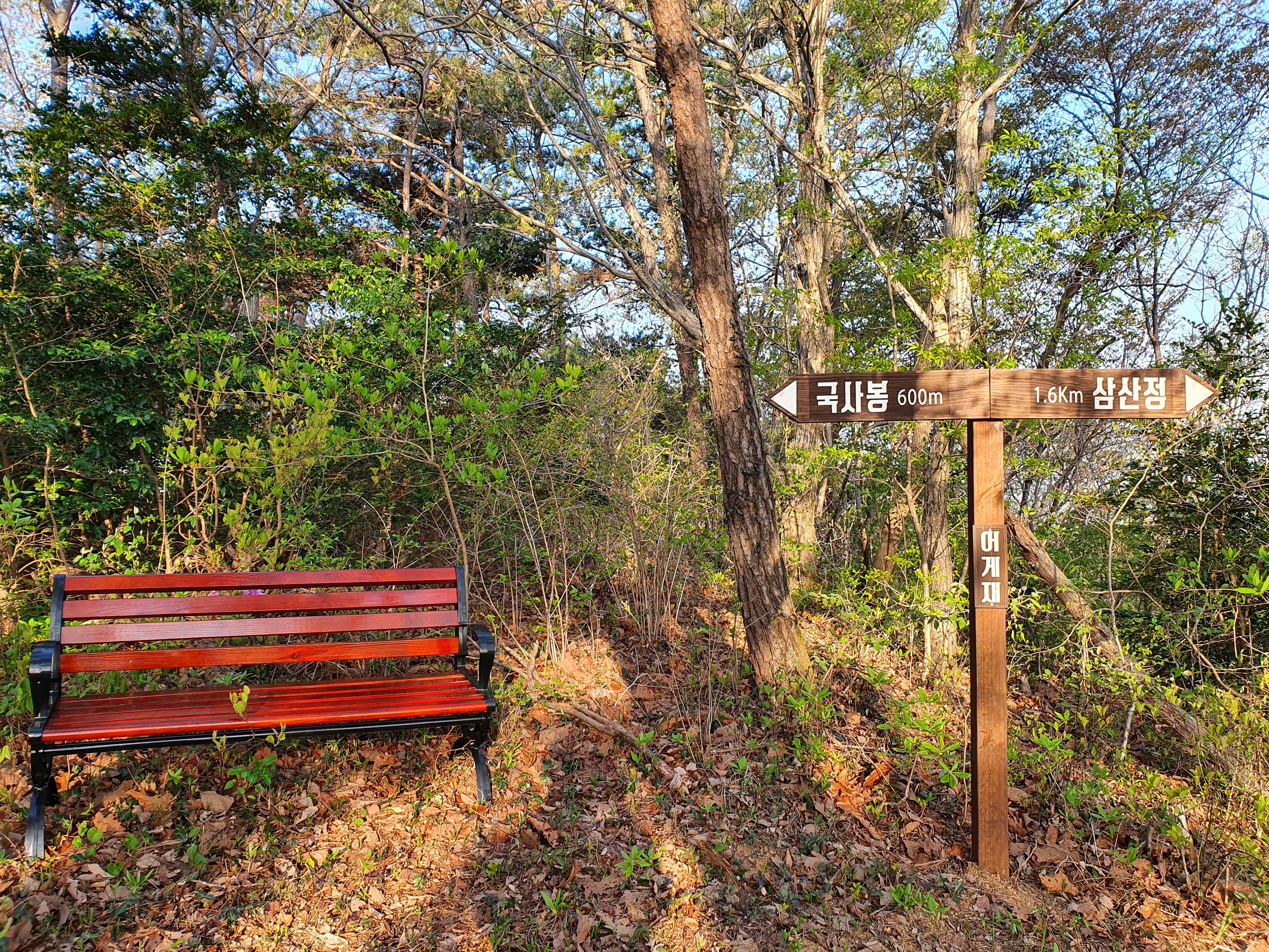 국사봉으로 올라서면 장의자들과 운동기구들이 있고