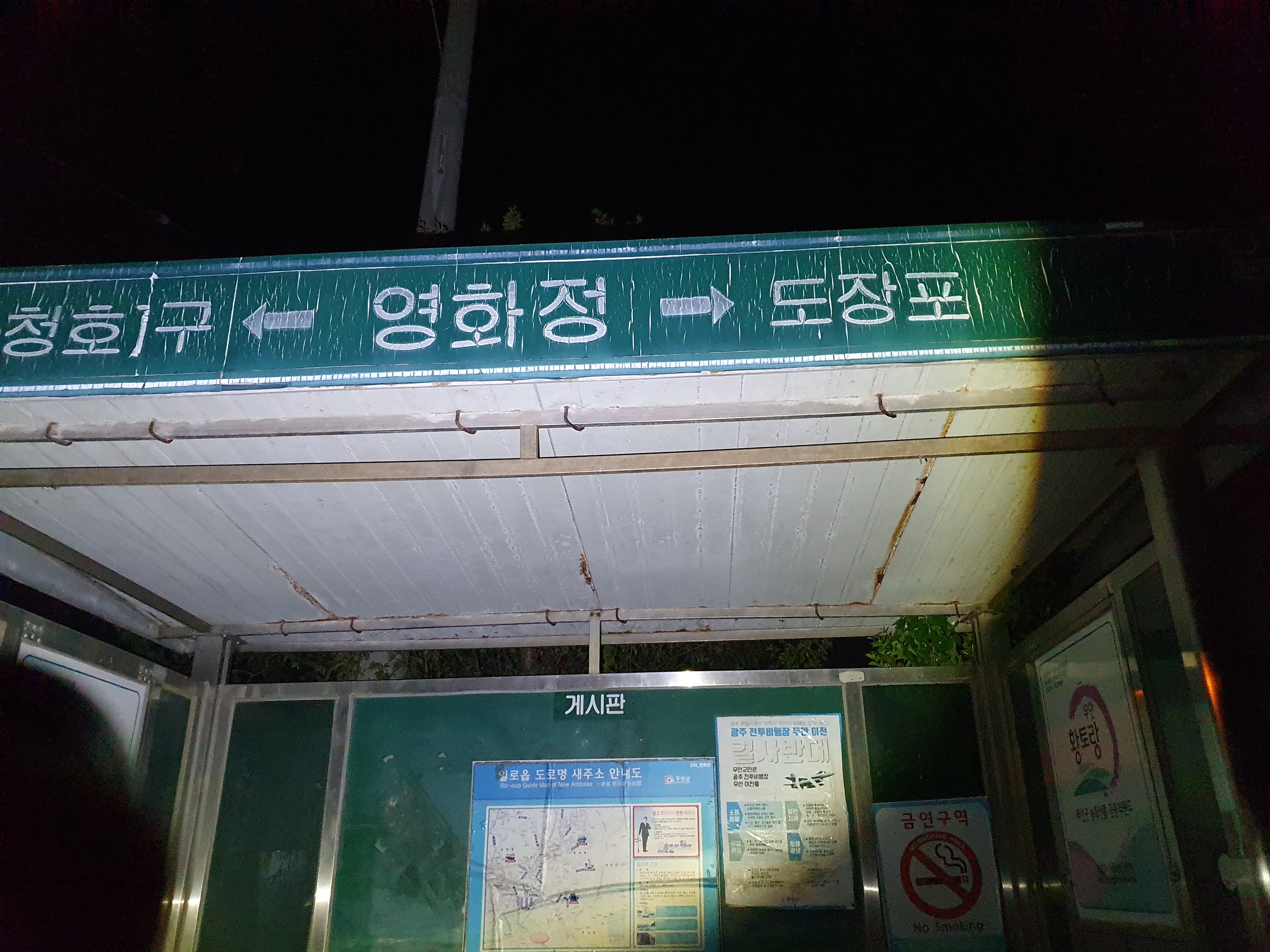 영화정마을 버스정류장 일로로572집 앞에 20시에 도착했으니