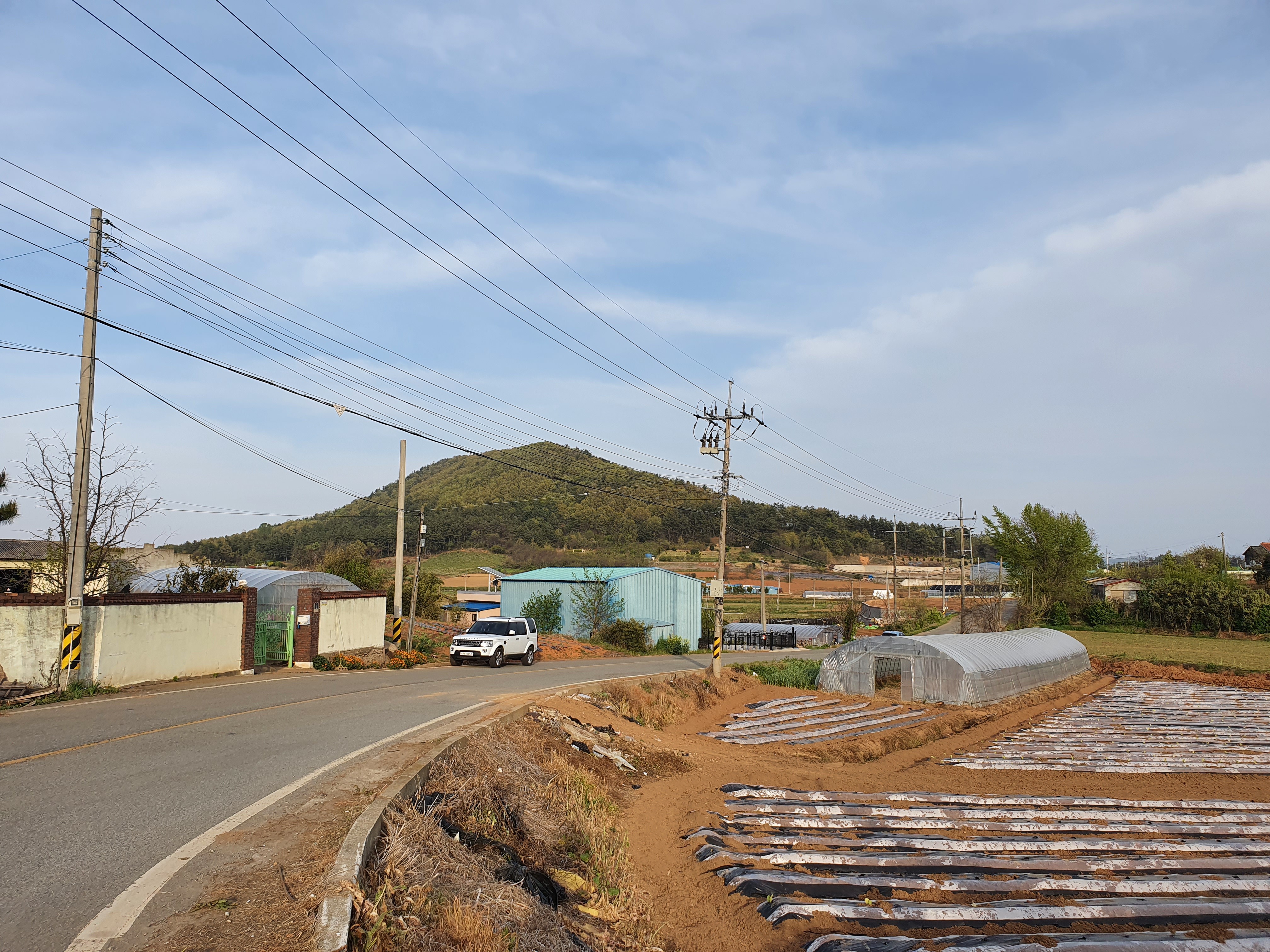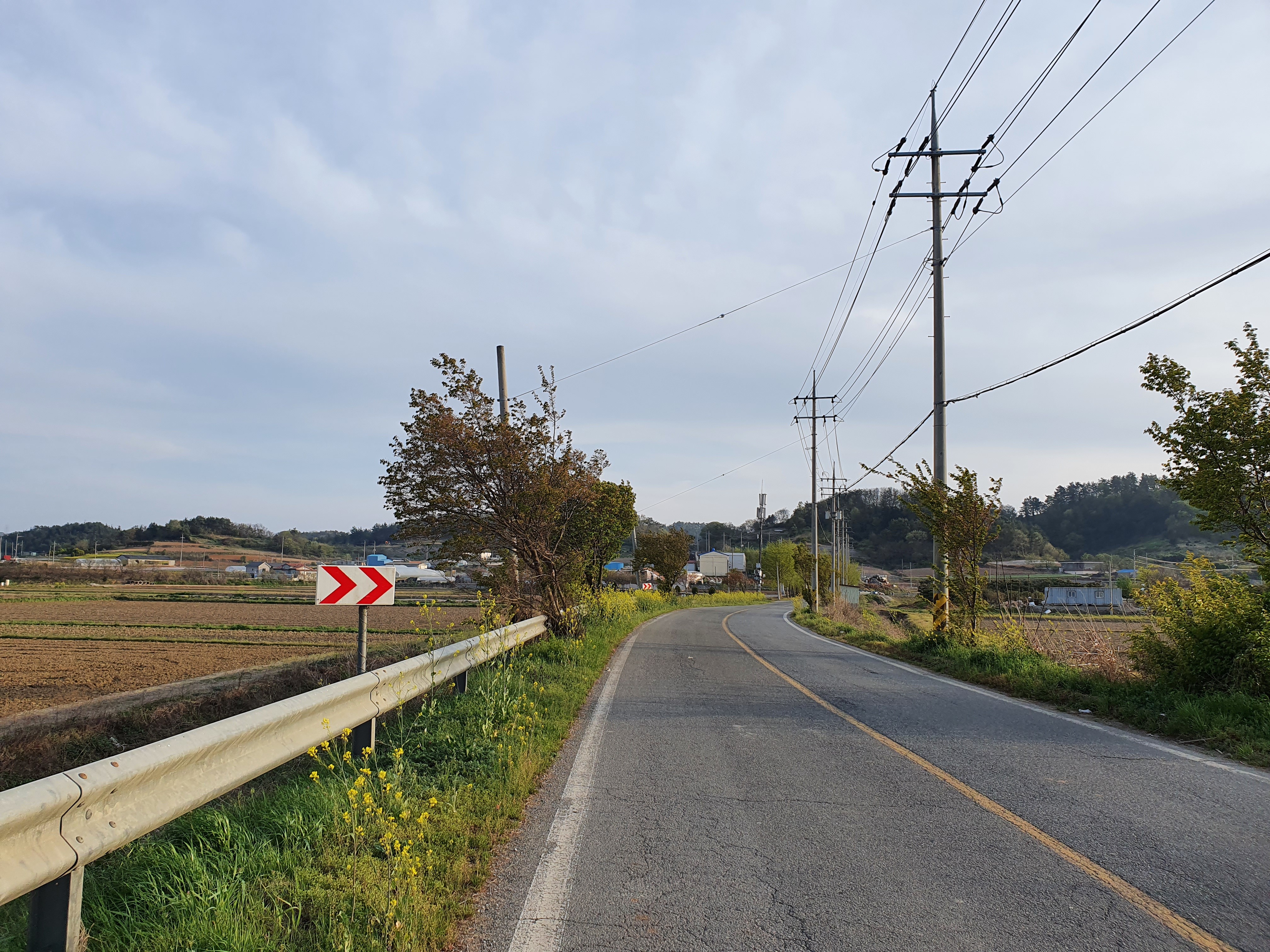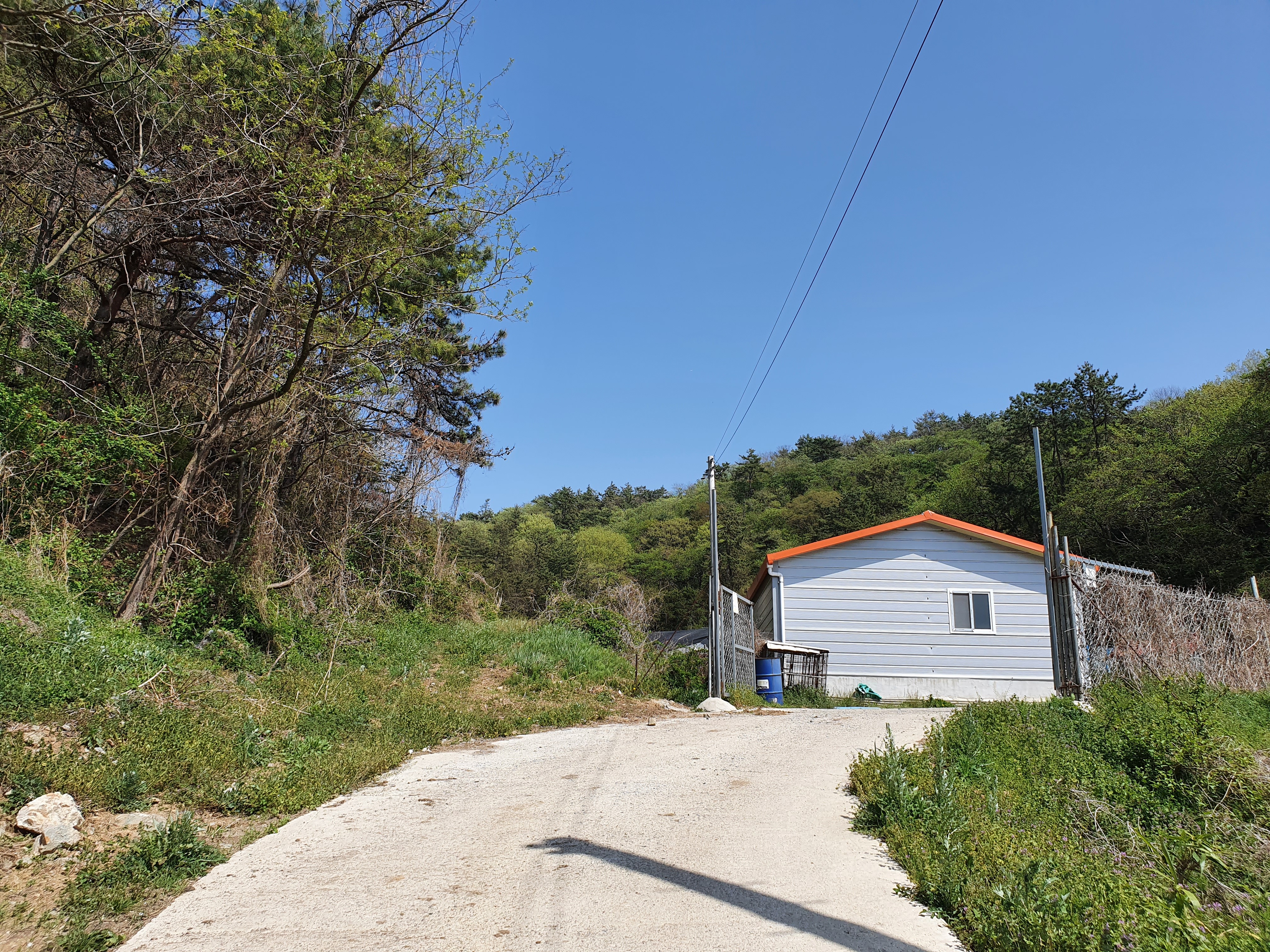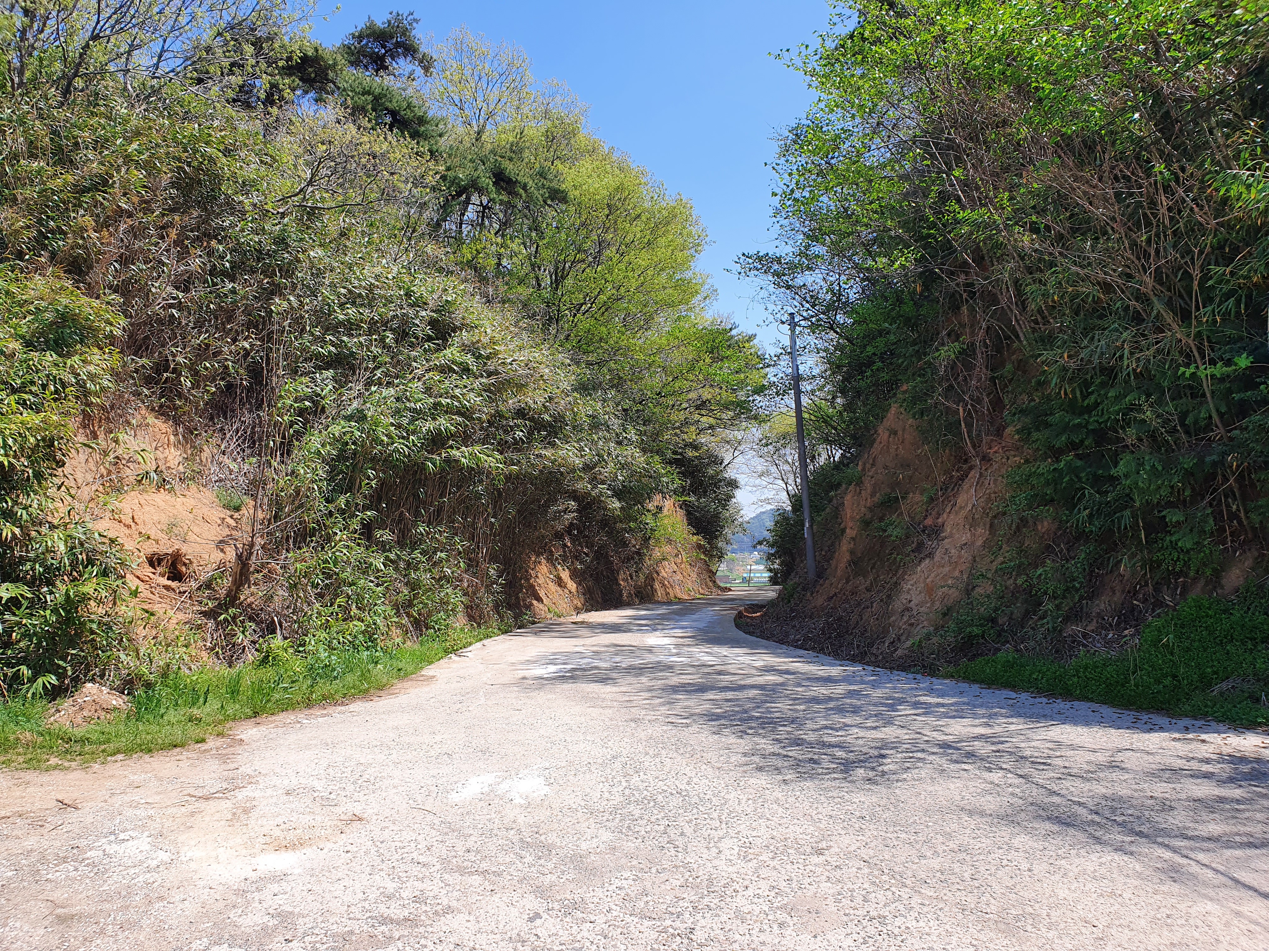 좌쪽 시커먼 산밑으로 가는 1차선 포장도로가 보이면 그리로 들어간다