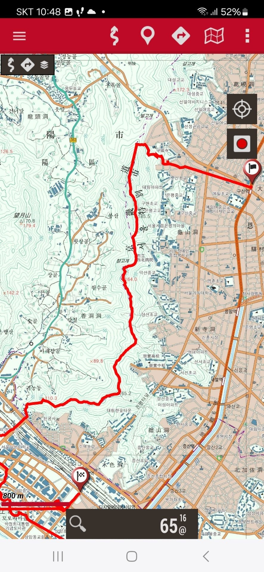 종주에 필요한 국립지리원 5만분의1 지형도 도엽명 : 서울