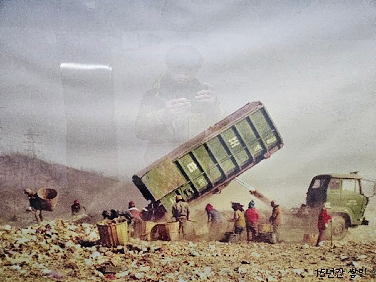 쓰레기산을 만드는 차량들과