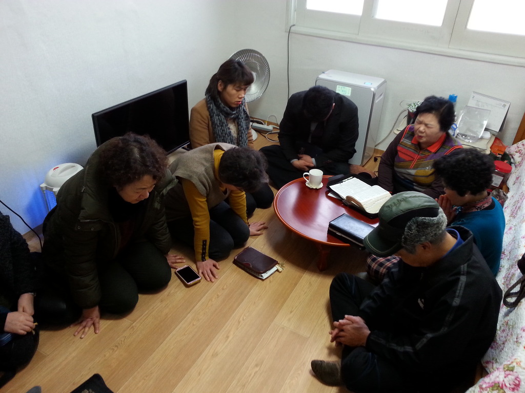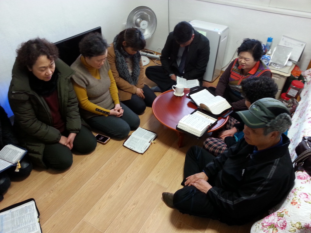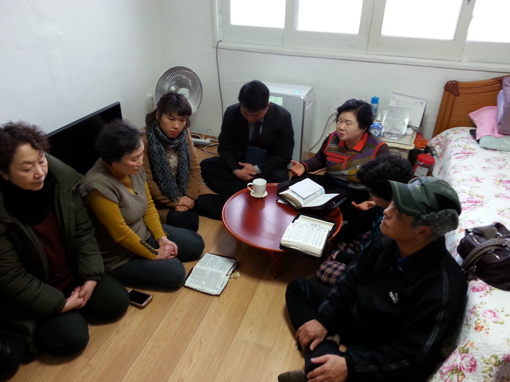 구현숙집사님의 가정에 축복의 말씀을 선포하고 계시는 목사님