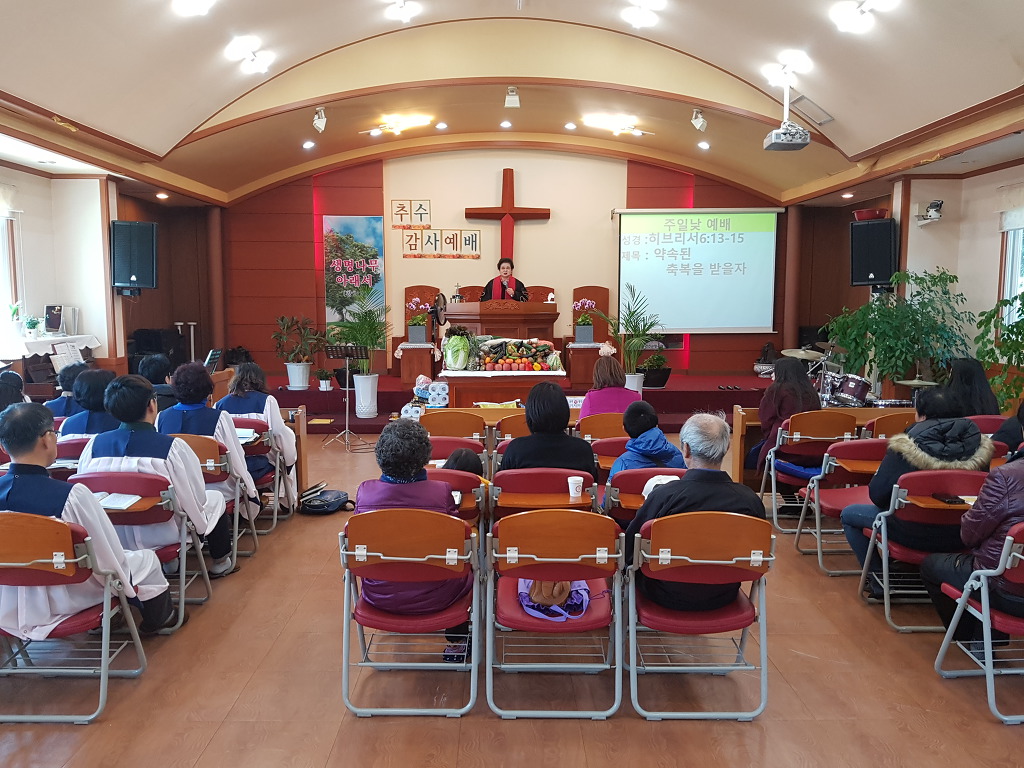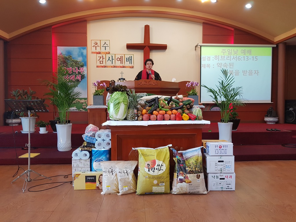 - 올해 추수감사주일에는 "약속된 축복을 받을 자" 라는 제목으로 목사님께서 말씀을 선포해주셨습니다.