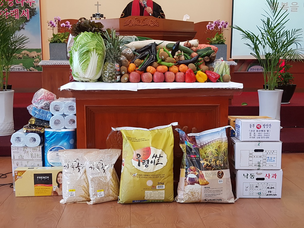 - 성도들의 작은 정성이 모여져 추수감사제단이 쌓여졌습니다.