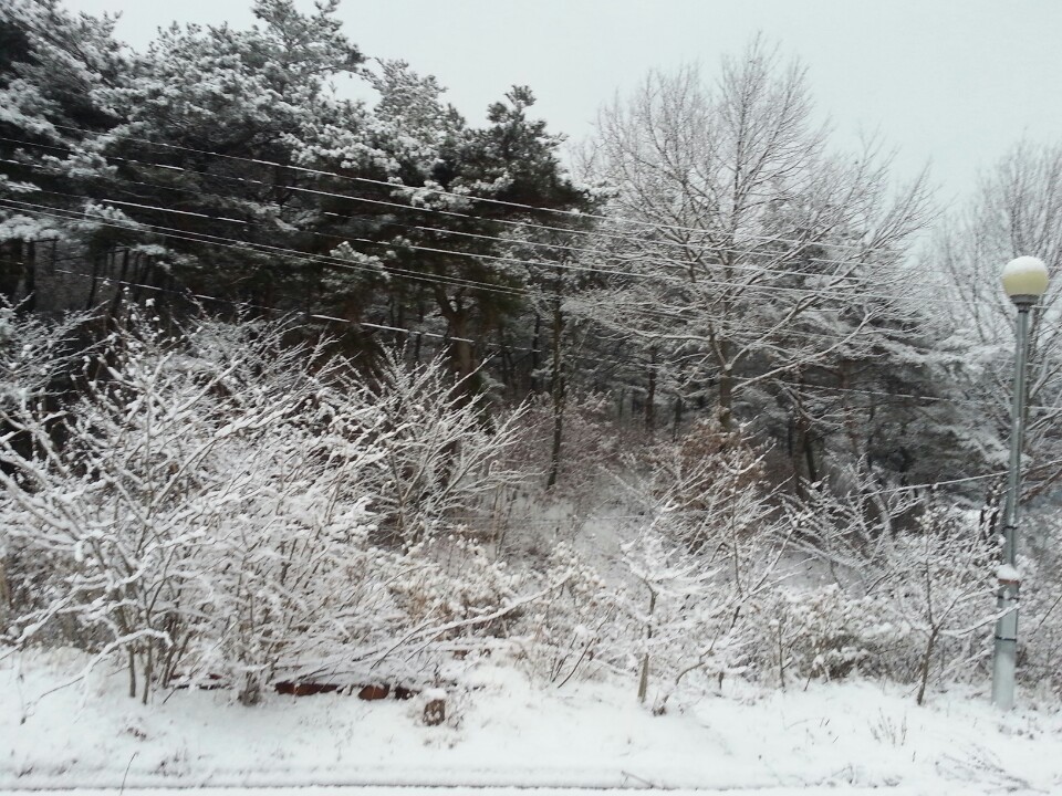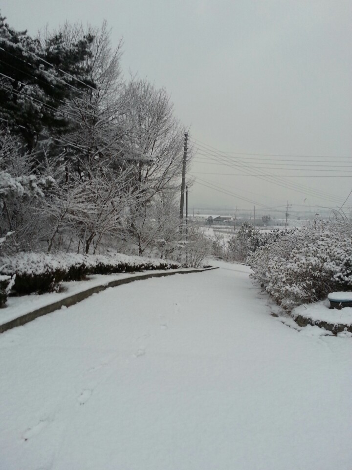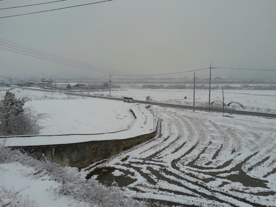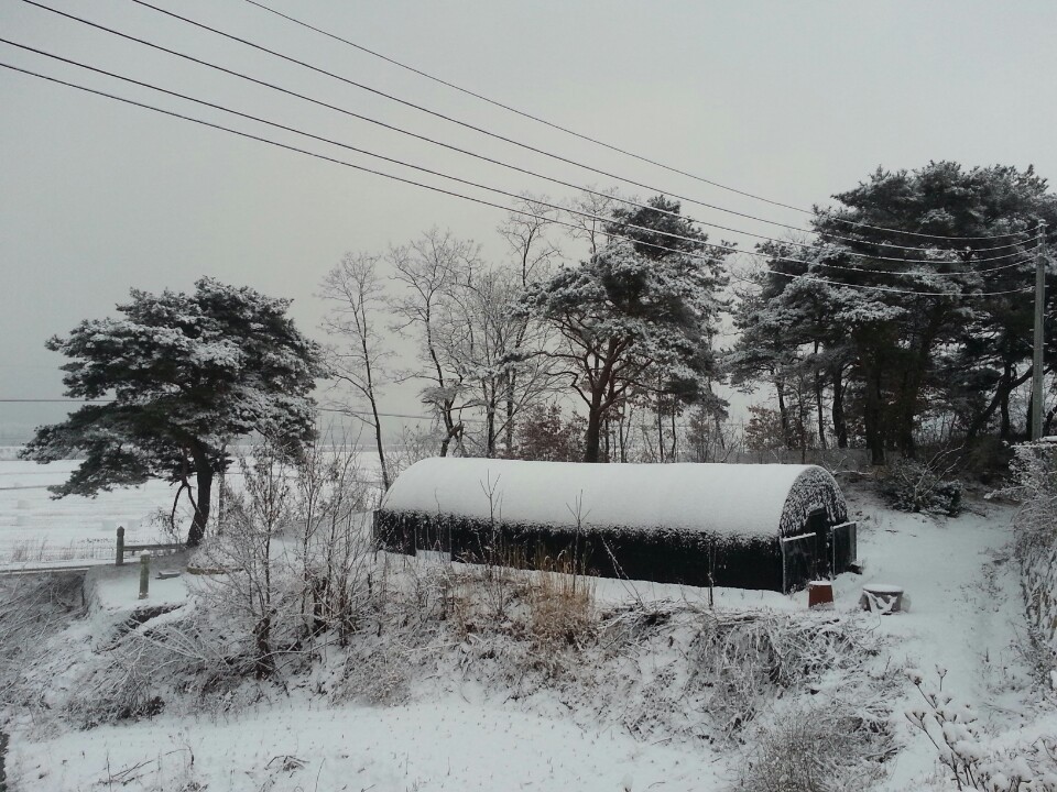 비닐하우스 위에 가득쌓인 눈이 롤케익 위에 뿌려진 생크림 같네요 ㅎㅎ