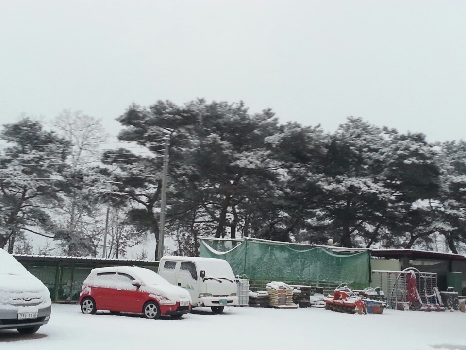 함박눈 덕분에 빨간 미니 자동차 색깔이 더 선명하네요 ㅎㅎㅎ