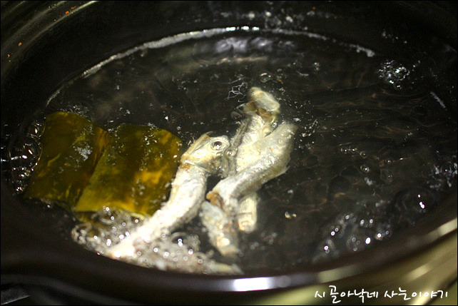▲ 육수는 멸치와 다시마를 넣고 바글바글 끓여서 준비하는데