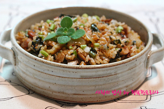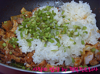 양념에 밥을 볶아 먹는 것입니다.