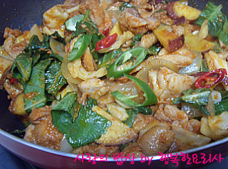 닭갈비야 집에 남아있는 채소를 넣어 볶으면 되서