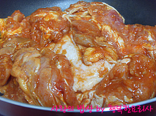 1. 석쇠나 팬에 닭갈비를 놓고 중불로 가열한다.