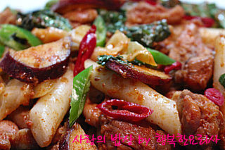 양념닭갈비1kg,떡볶이떡7개,고구마1개,양파1/2개,