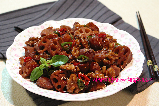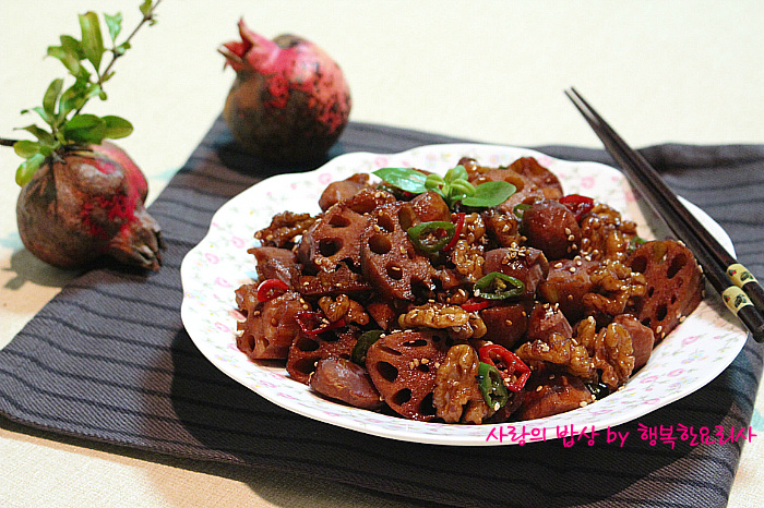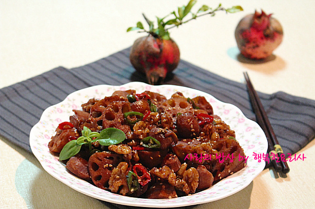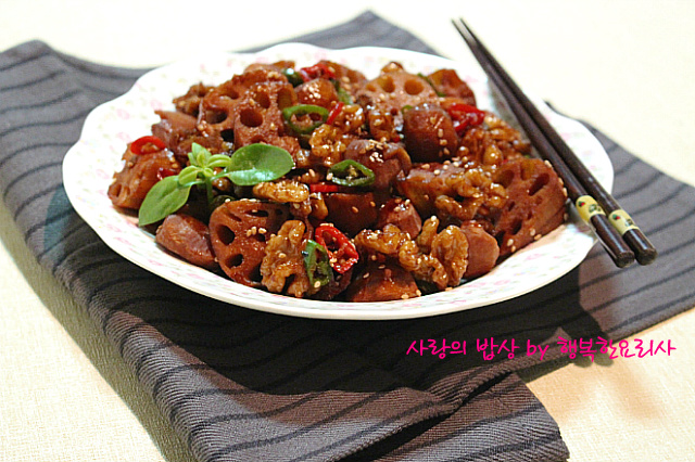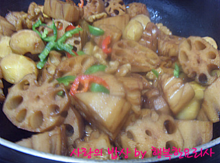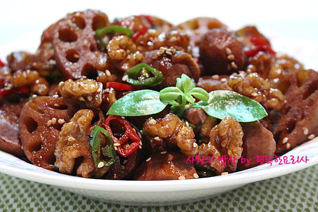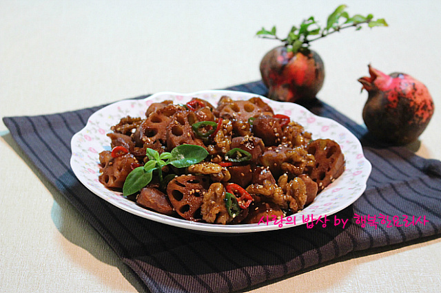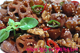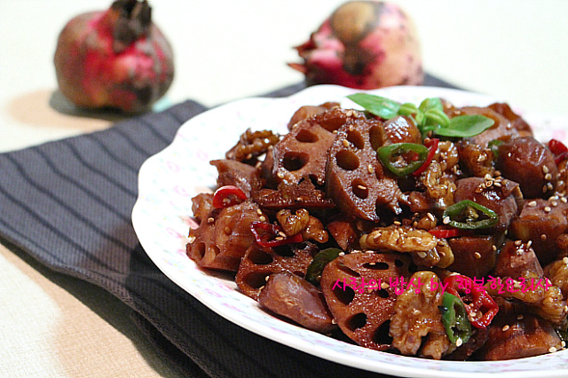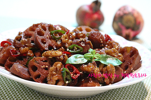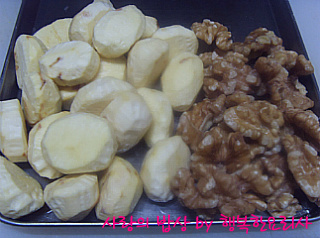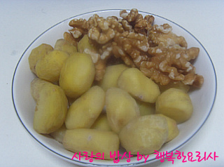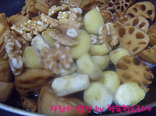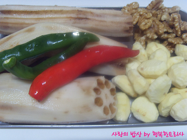 연근300g,밤23개,호두1컵,고추(청,홍)1개씩,