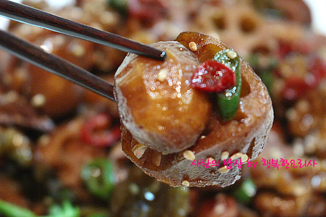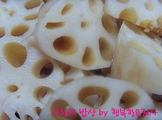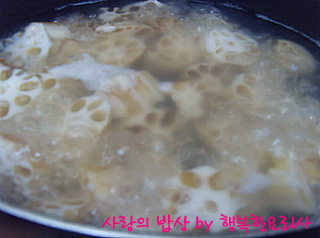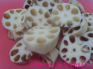 1. 손질한 연근은 먹기좋은 크기로 썰어