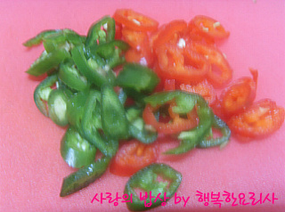 2. 고추는 얇게 썰어 씨를 빼고 호두는