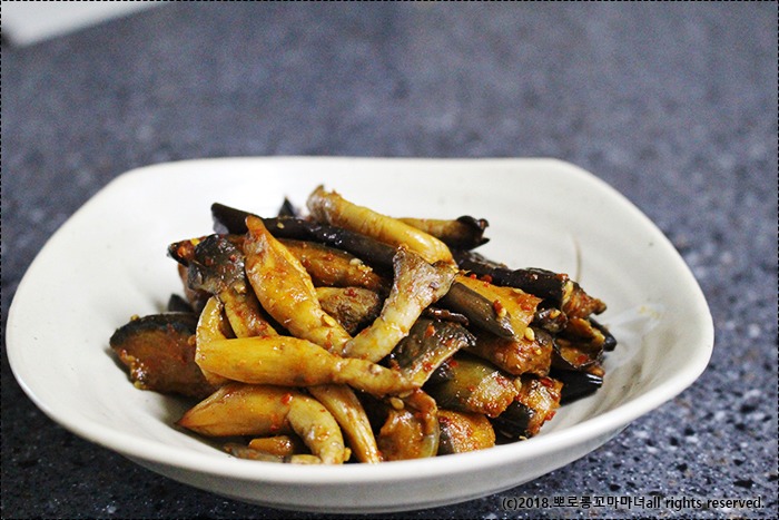 오늘 소개할 것은 가지버섯 볶음입니다.