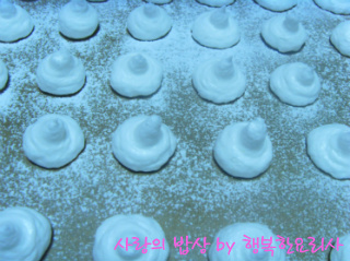계란흰자2개분,설탕40g, 슈거파우더 적당량.