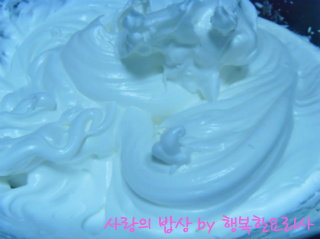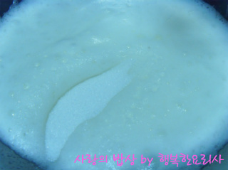 설탕을 두세번에 나누어 단단한 거품을 낸다.