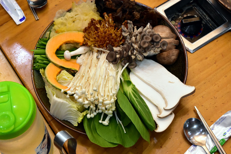 여러가지 버섯과 야채가 들어간 샤브샤브만 보아도 군침이 나오는데