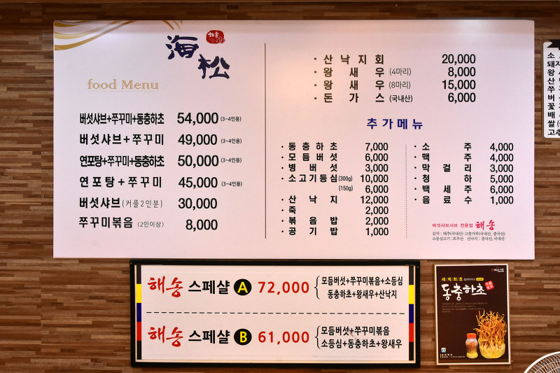 버섯샤브와 동충하초 그리고 쭈꾸미까지 4명 정도 먹을수 있는 메뉴가 54,000원