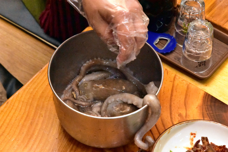 식구들이 워낙 낙지를 좋아해서 메뉴 외에 낙지를 더 시키곤하는데 오늘은 산낙지크기가 엄청나네요.