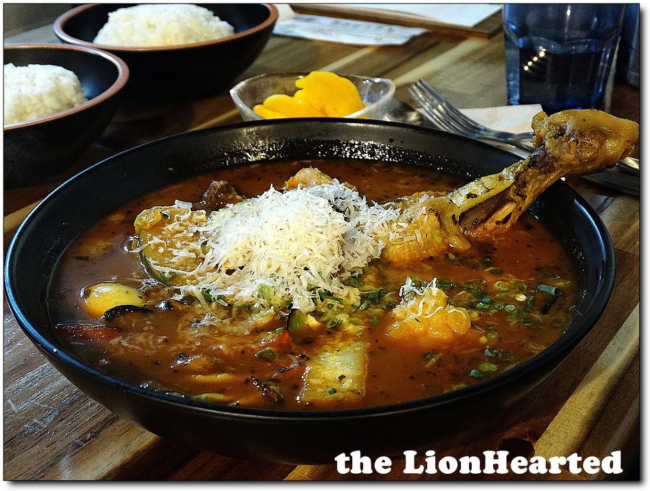 닭다리 스프 커리에 큼직한 닭다리 하나가 들어 있다, 맛있게 먹을려면 손가락을 집어서 뜯어 먹으면 좋겠지만 가정이 아니므로 포크를 이용하여 찢어 먹게 된다, 이게 귀찮으면 직원에게 부탁을 하여 주방에서 먹기 좋게 살을 발라 준다, 그때는 뼈다귀만 남은 닭다리는 돌아 오지 않는다,