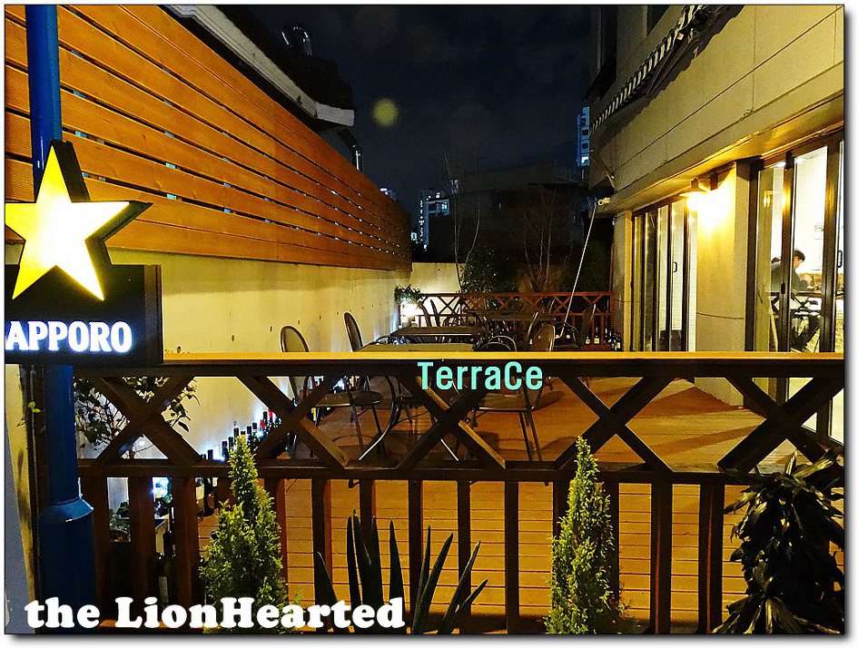 우리가 찾기가 어려웠던 원인은 편의점 앞으로 갔었기 때문이었다, 편의점과 같은 건물인데다가 건물 출입구 쪽에는 어두워서 식당 입구가 눈에 뜨이지 않았다, '삿포로'맥주 광고판을 보고 들어 갔더니 식당 뒷문쪽이었다, 편의점을 중심으로 우측에는 주차장으로 들어 가는 길, 좌측이 식당 뒷문쪽이다, 위 출입문 쪽에서 사진을 찍던 중 메뉴판이 적힌 입간판이 쓰려져 있길래 세우고 있는데 모녀가 들어 오더니 인사를 한다, 아마 주인으로 여겼는지도 모르겠다, 응대를 하면서 손님이라고 밝혔다,