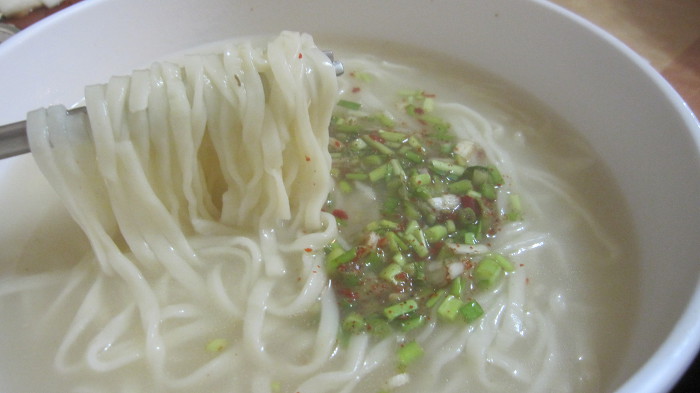 그런데 국수를 한입 먹어 보는 순간 이게 뭐지? 무슨 칼국수 맛이 이리 밍밍하지? 하는 생각이 들더군요.
